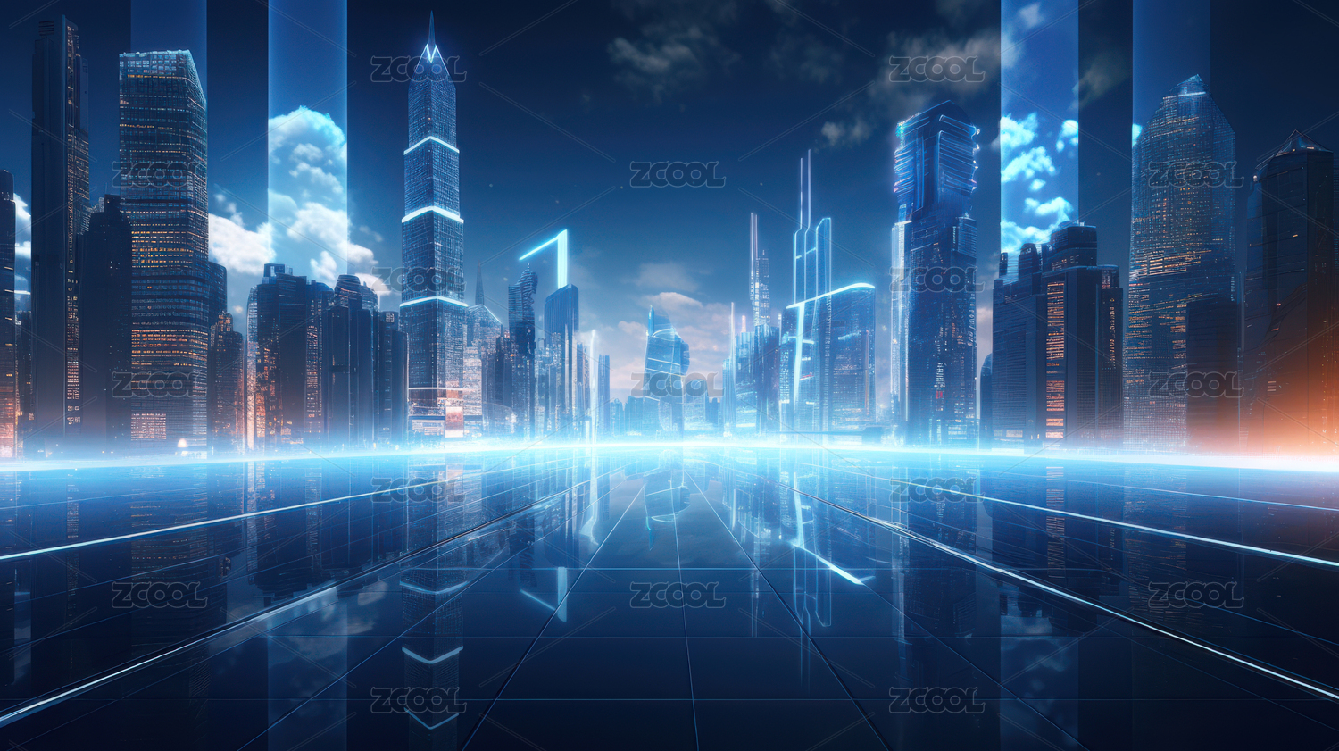 蓝调光影勾勒的科技天际线