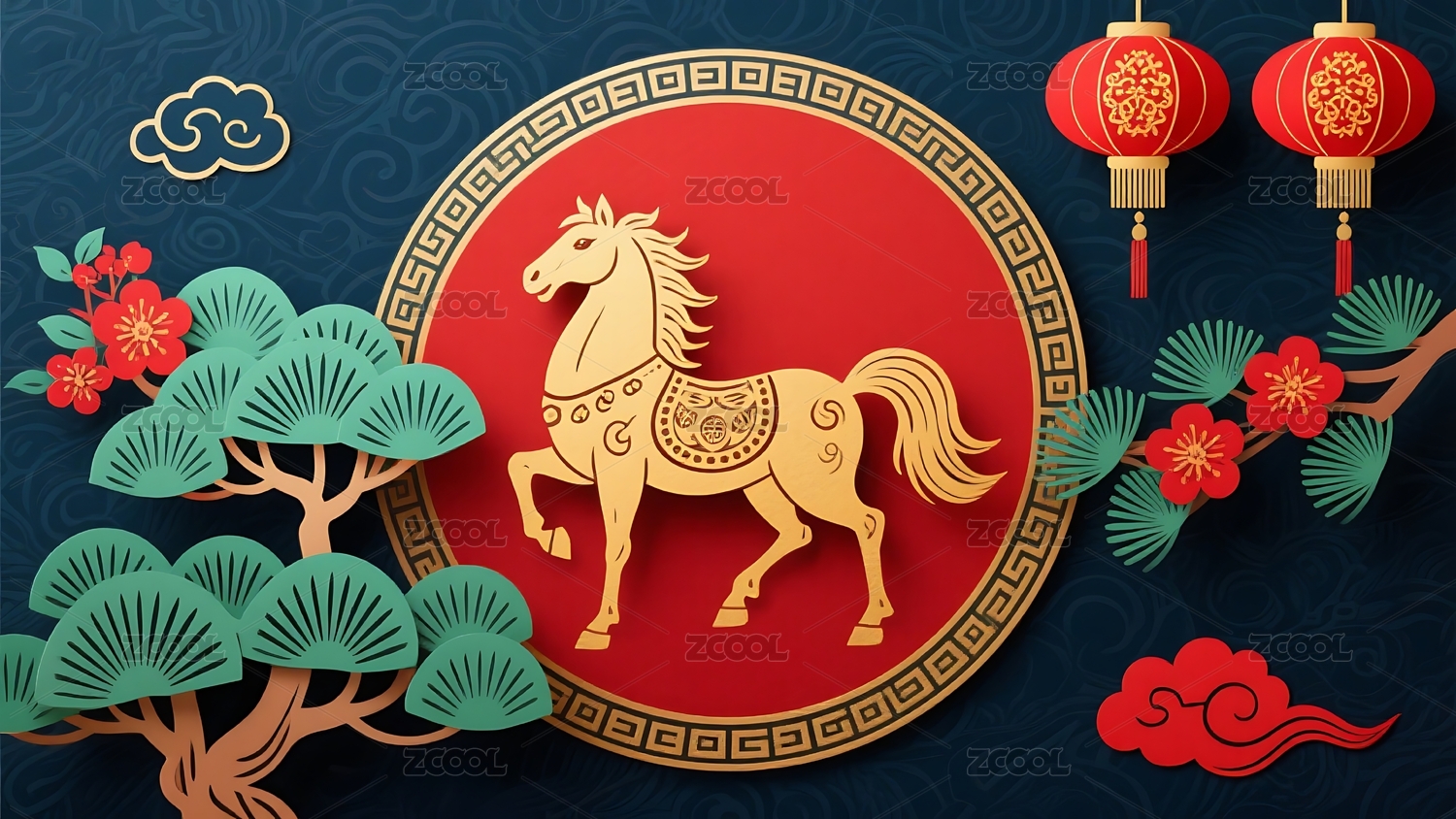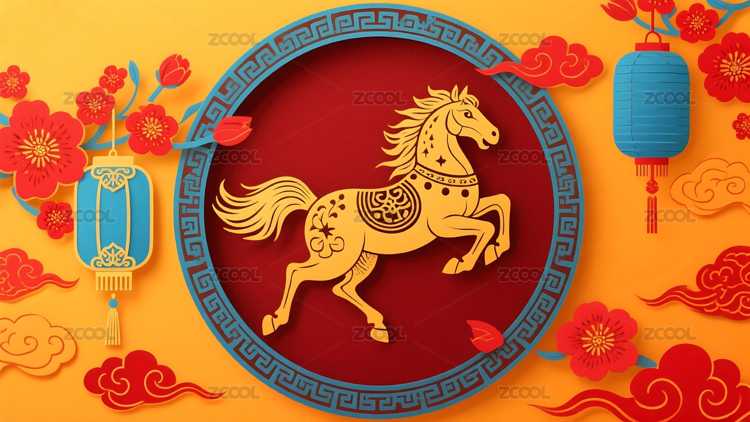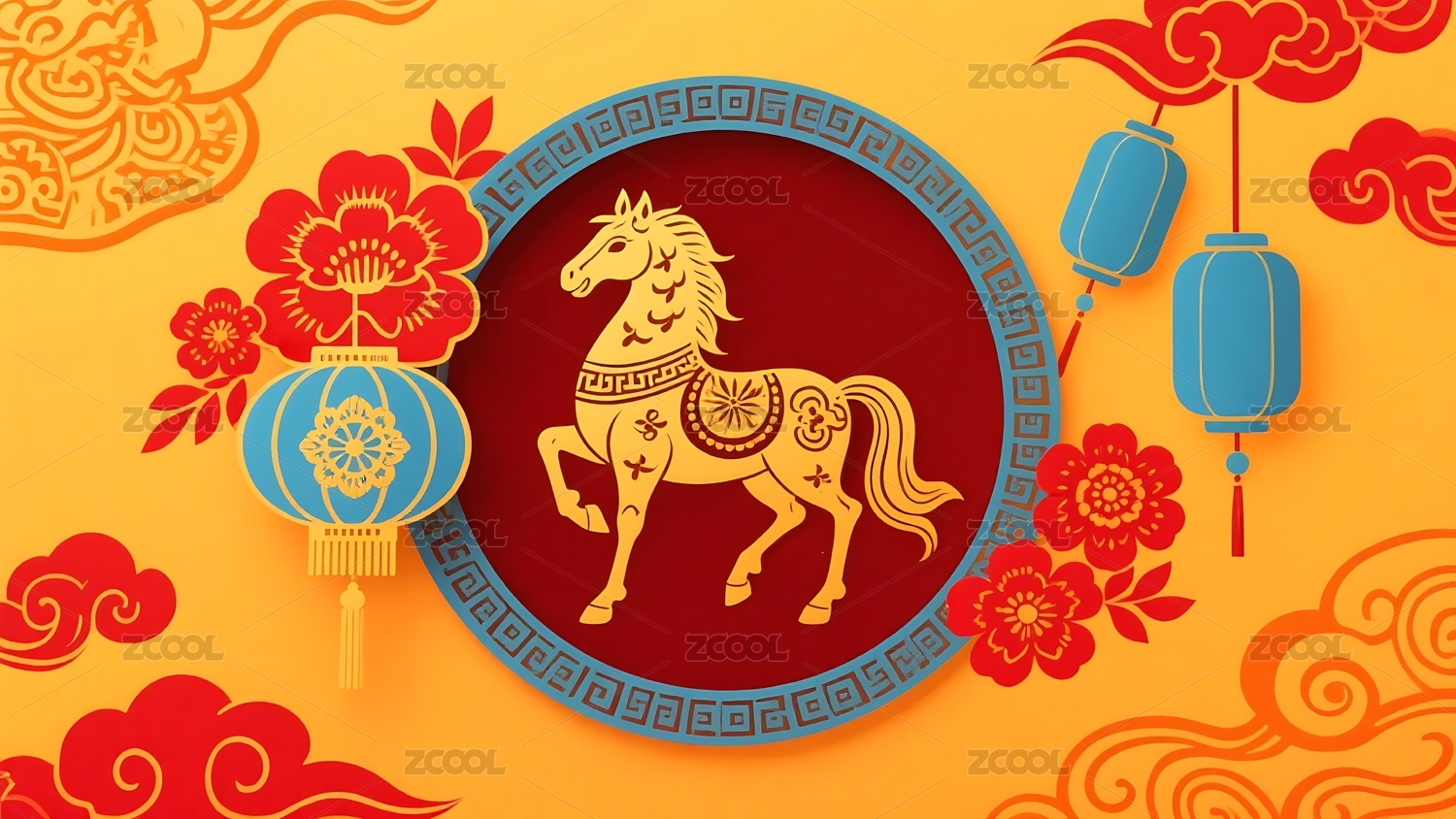 生肖,马,红色,圆形,云纹,灯笼,喜庆,传统,装饰,图案