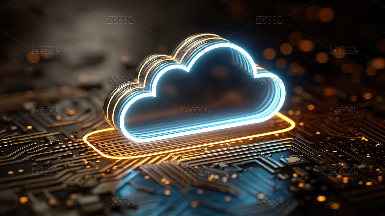 科技感电路板上的云朵图标