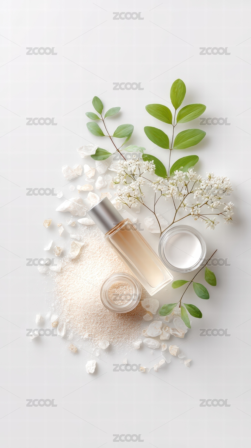 柔美,清新,背景,花卉,护肤品,绿色,组合,装饰