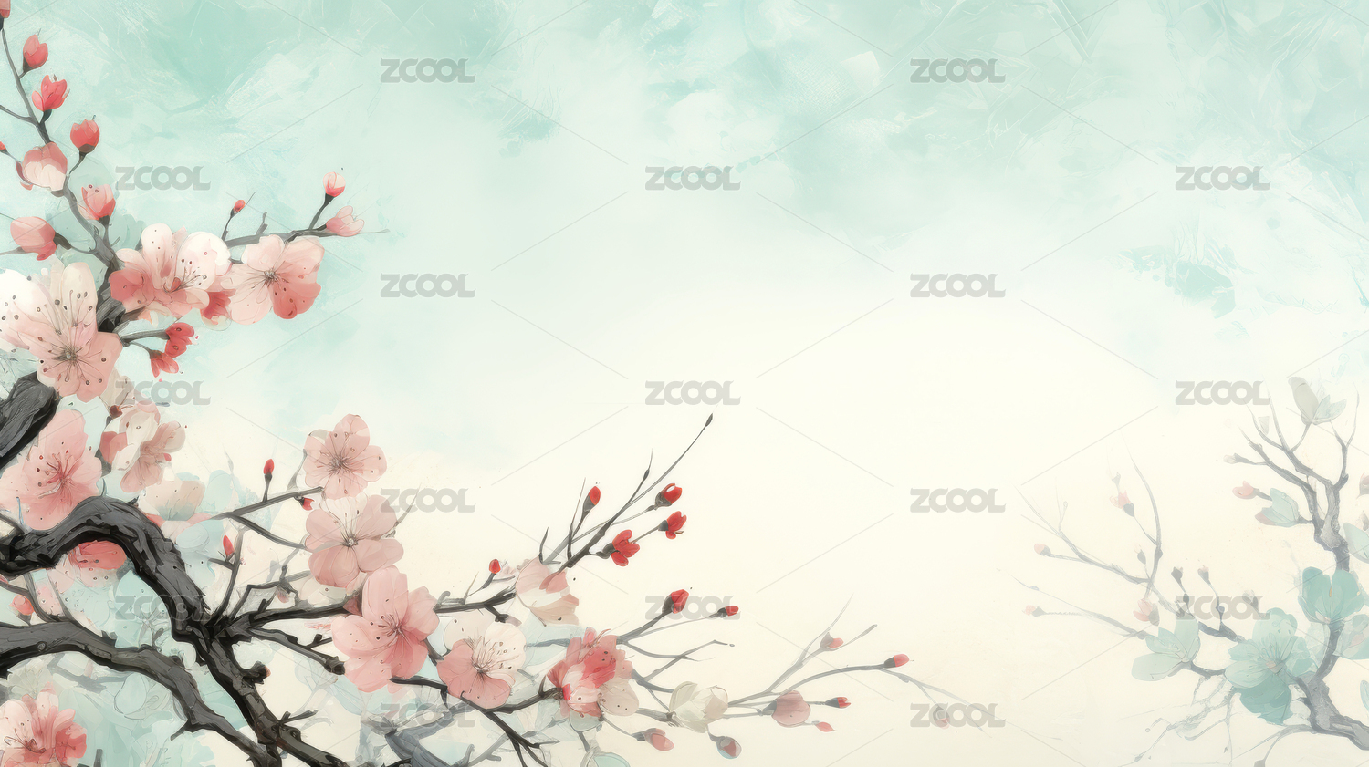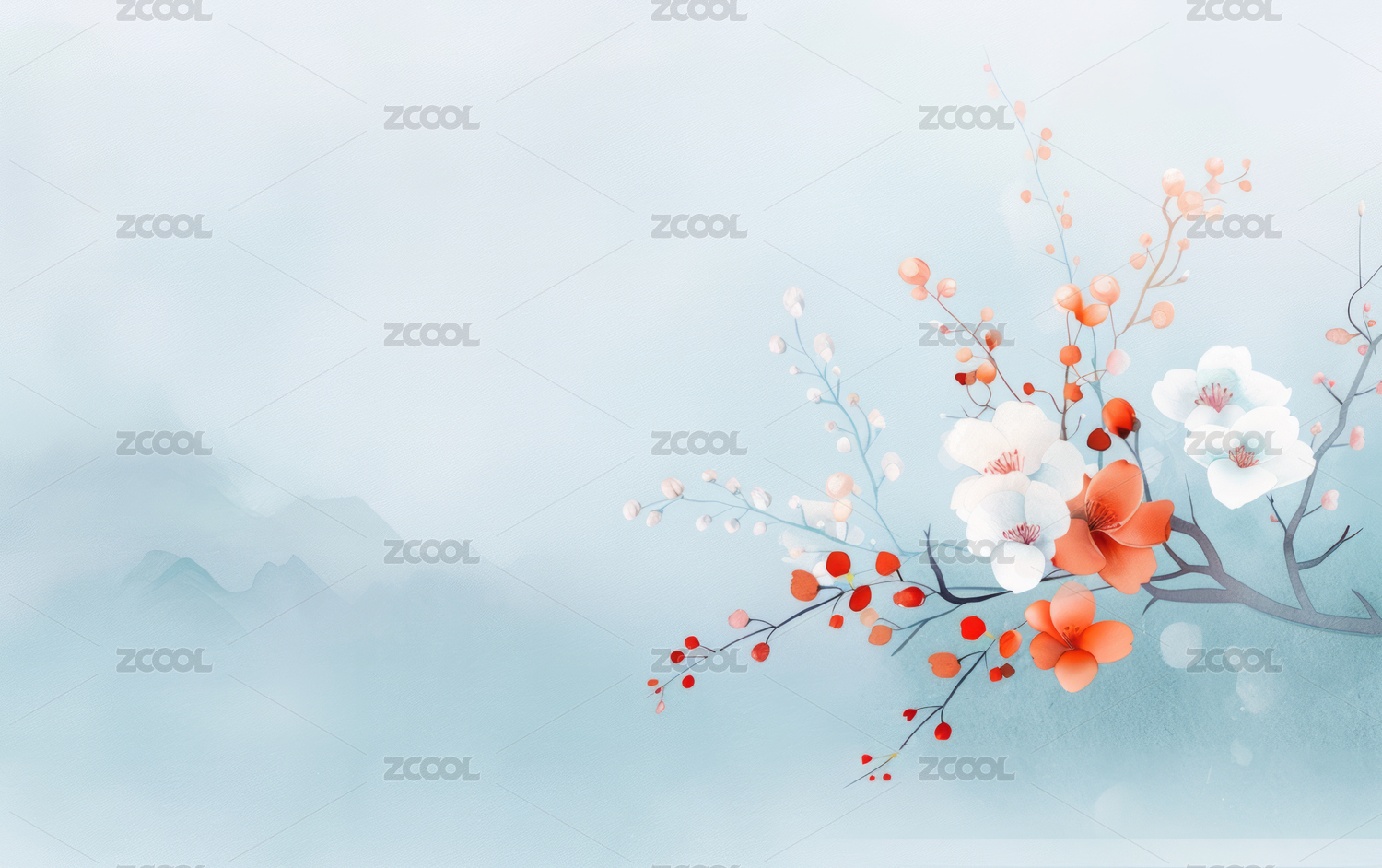 花朵,朦胧,背景,植物,自然,云雾,淡雅,远山,意境,树枝