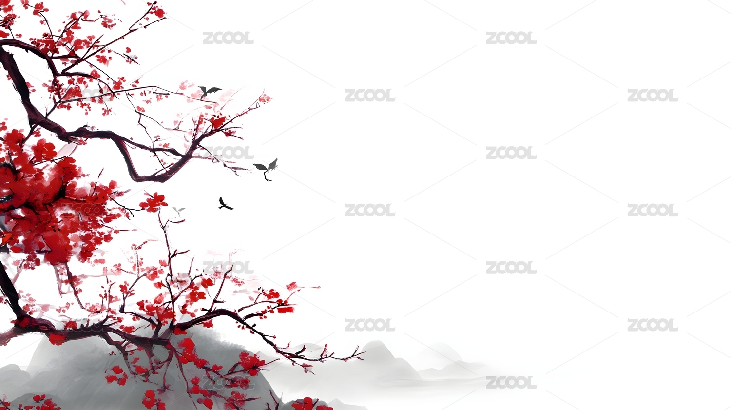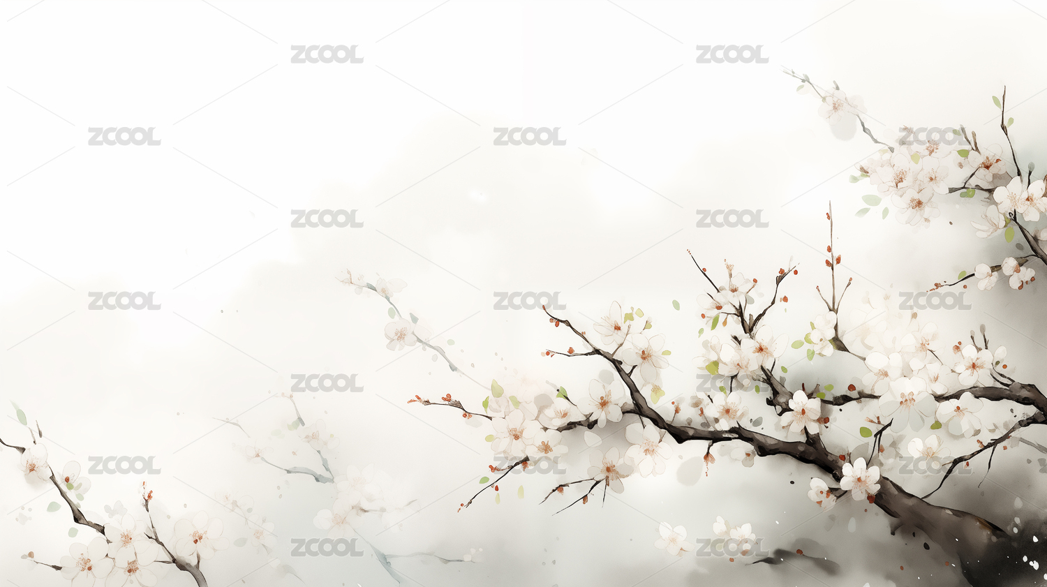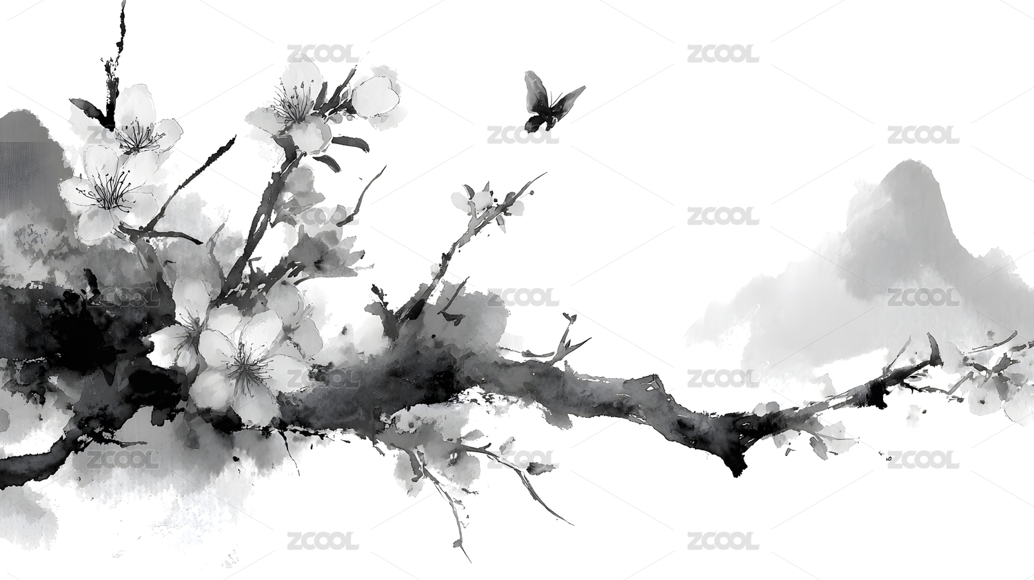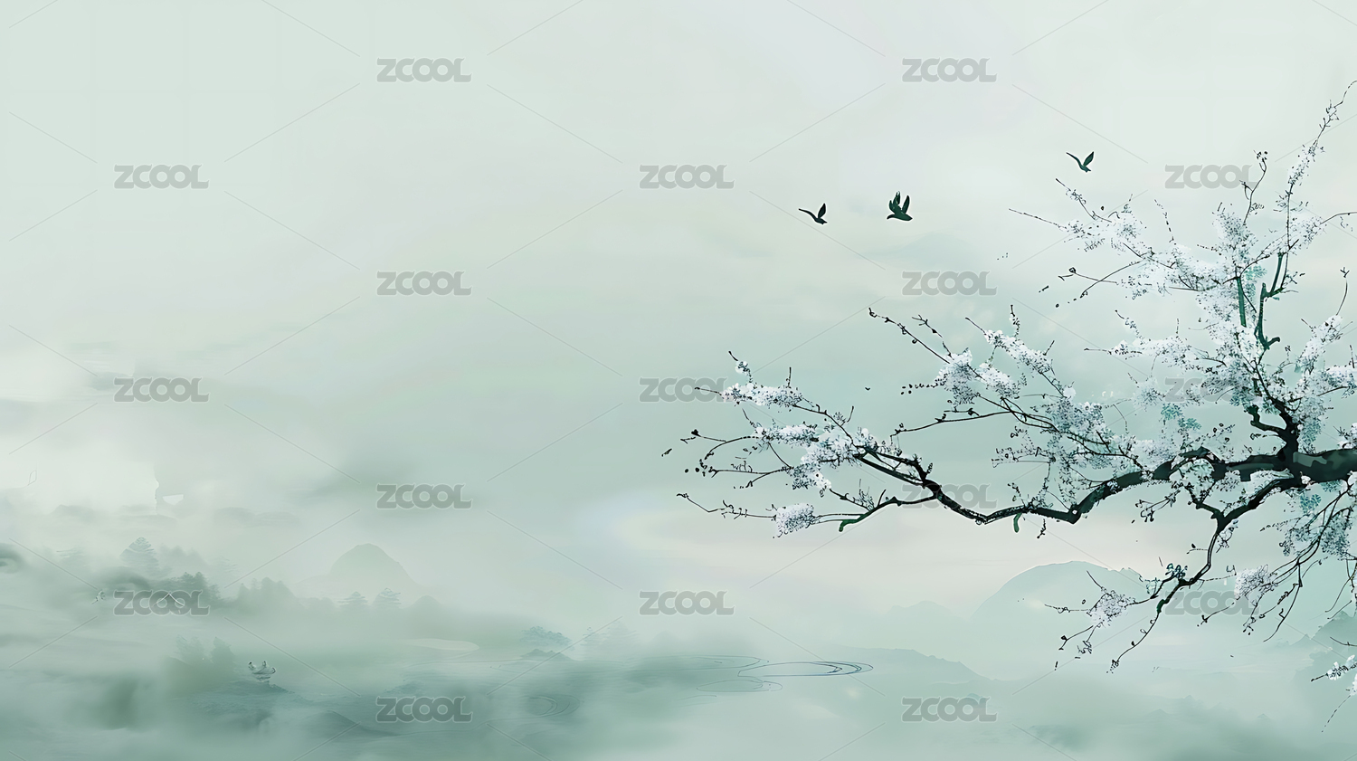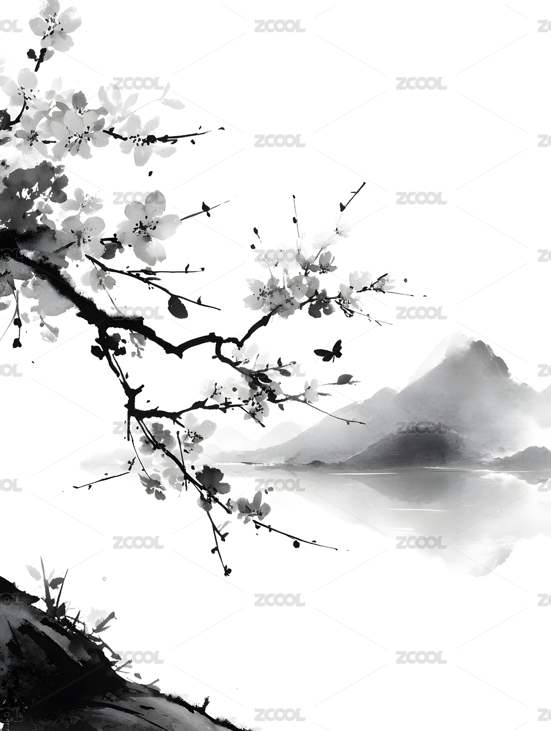 花朵,云雾,风格,淡雅,天空,意境,树枝,传统,山水,墨色