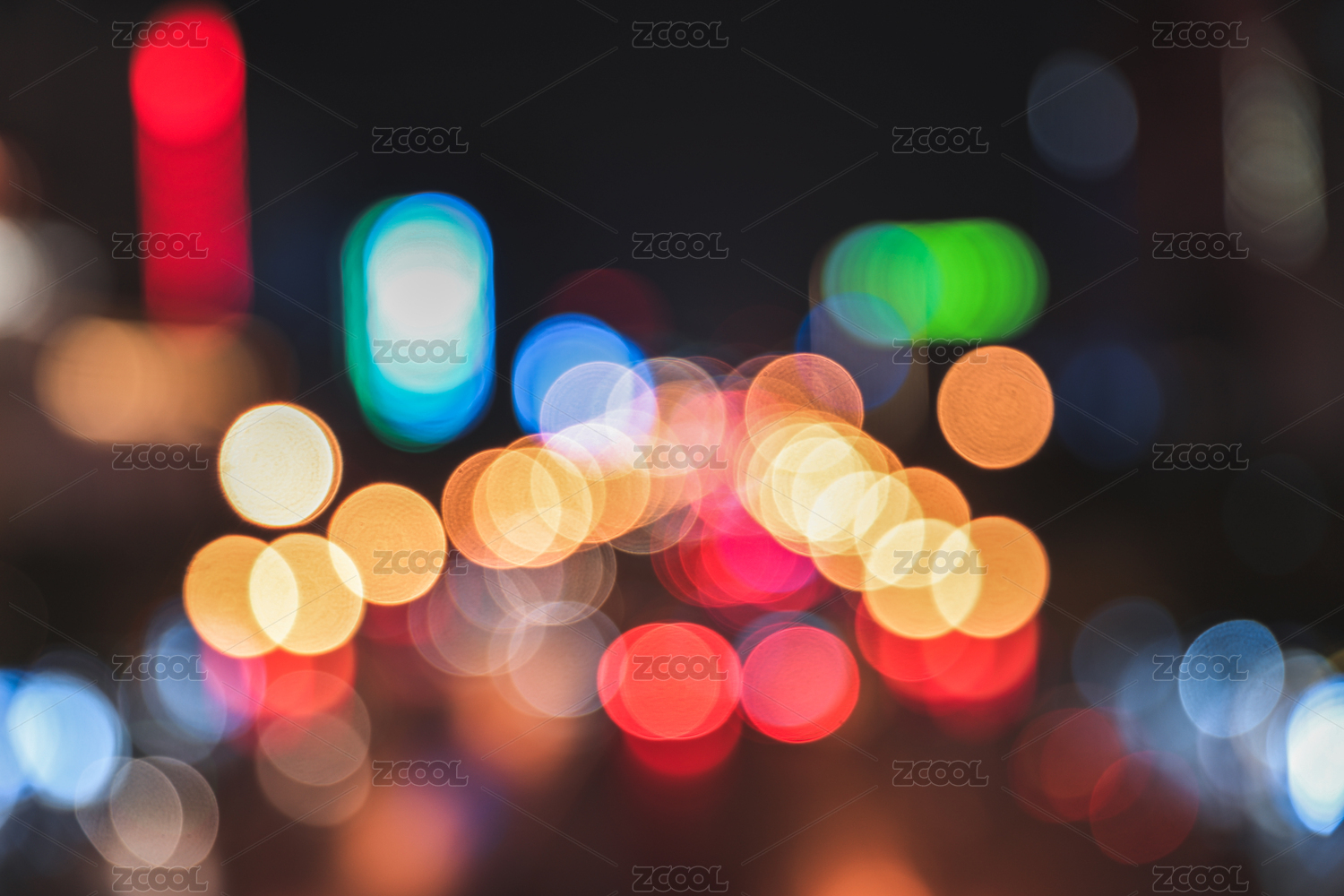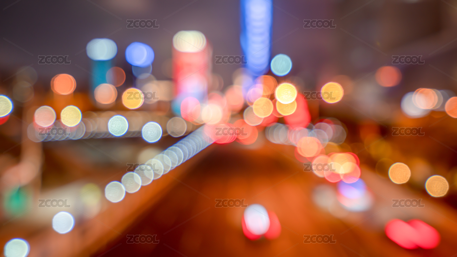 城市夜景灯光彩色梦幻光斑都市风光多色