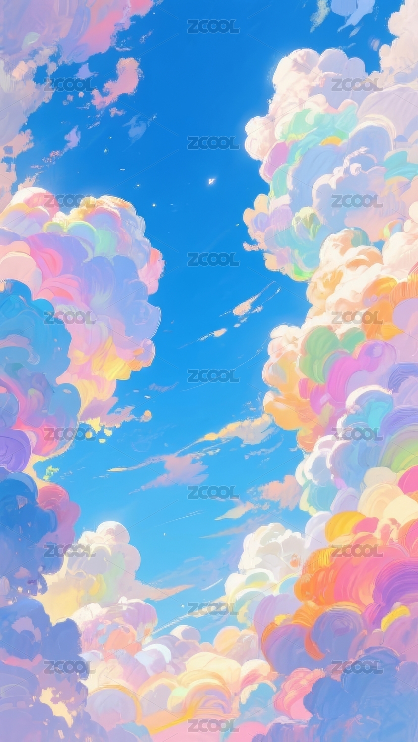 光影,天空,梦幻,蓝色,飘逸,色彩,粉色,云朵