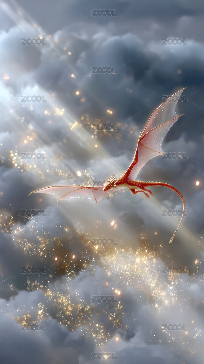 天空,云海,光辉,飞龙,翱翔,魔法,奇幻,神秘