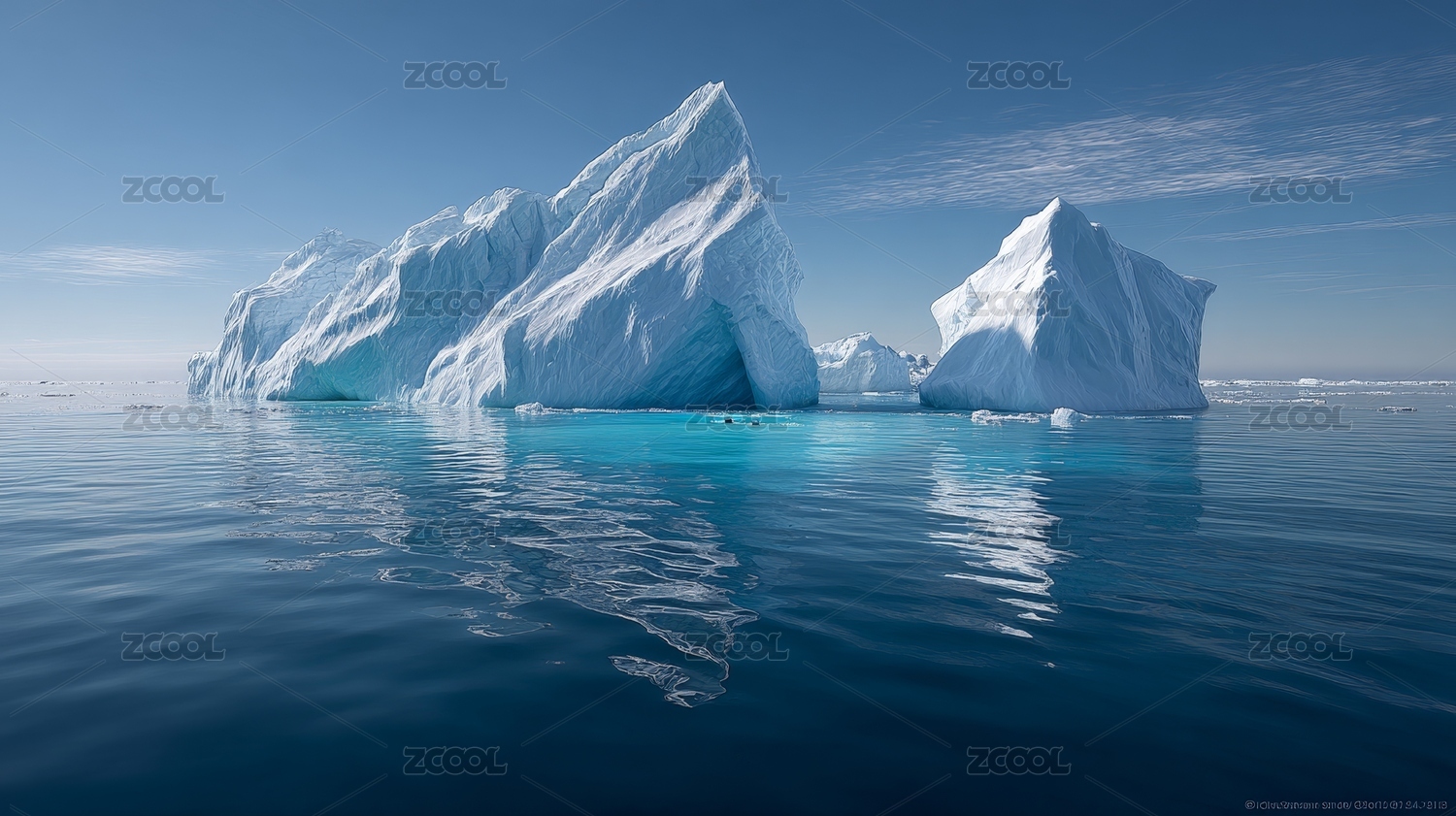 漂浮在清澈蓝色海洋中的雄伟冰山