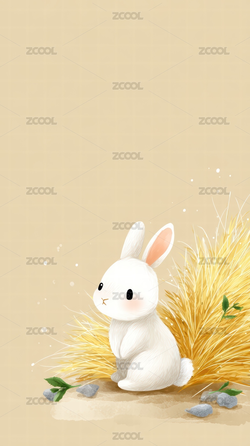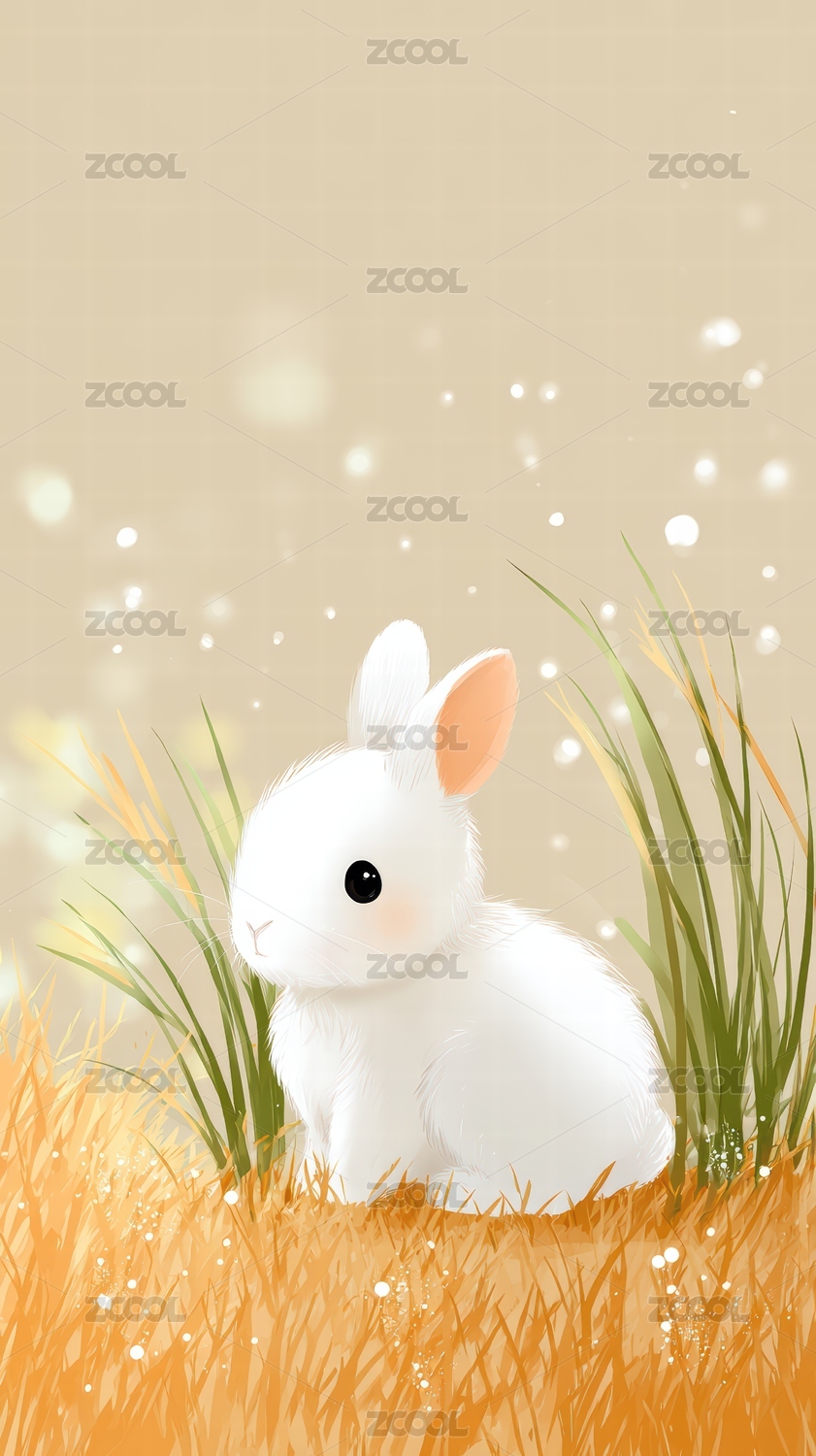草丛里的兔子插画壁纸