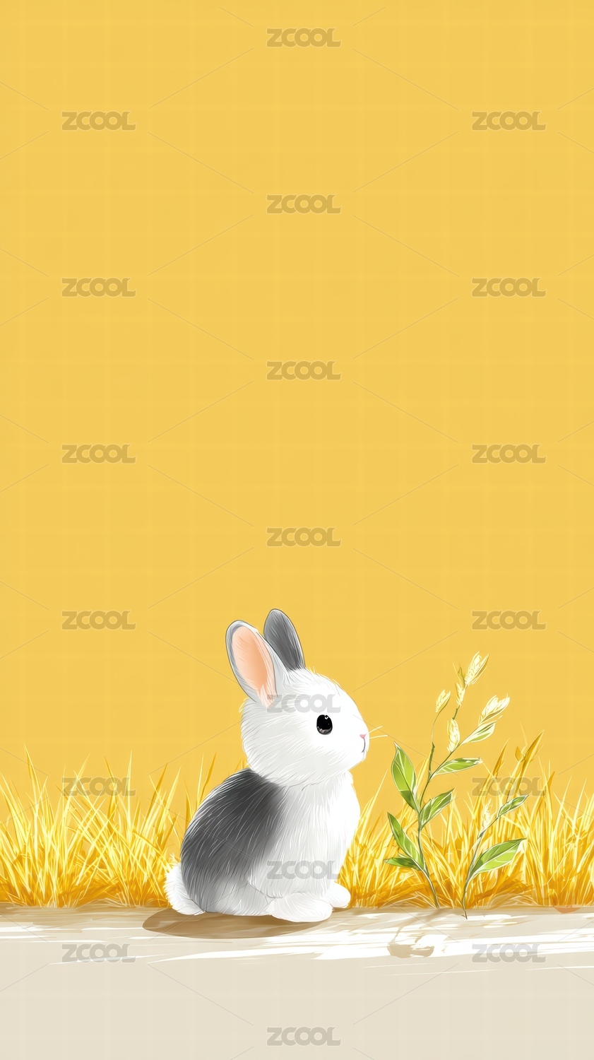 黄色背景下的小兔静谧时光