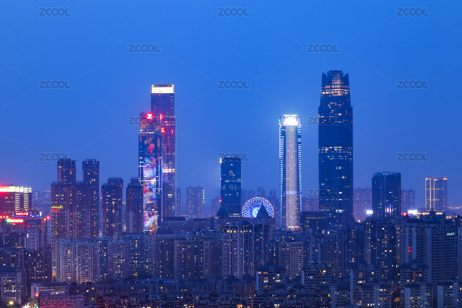 四川成都市中心建筑天际线夜景