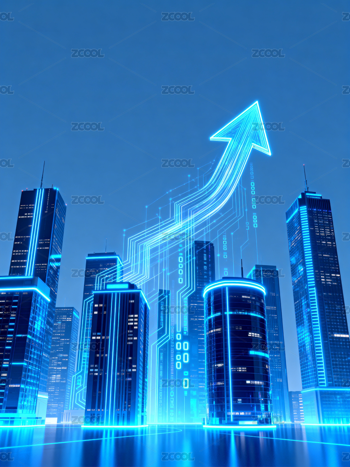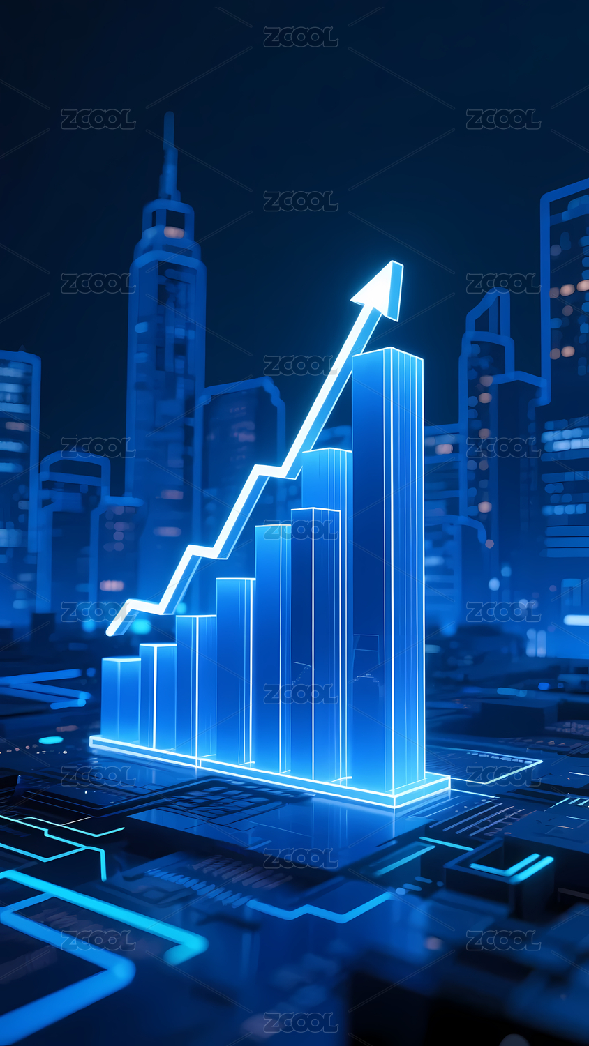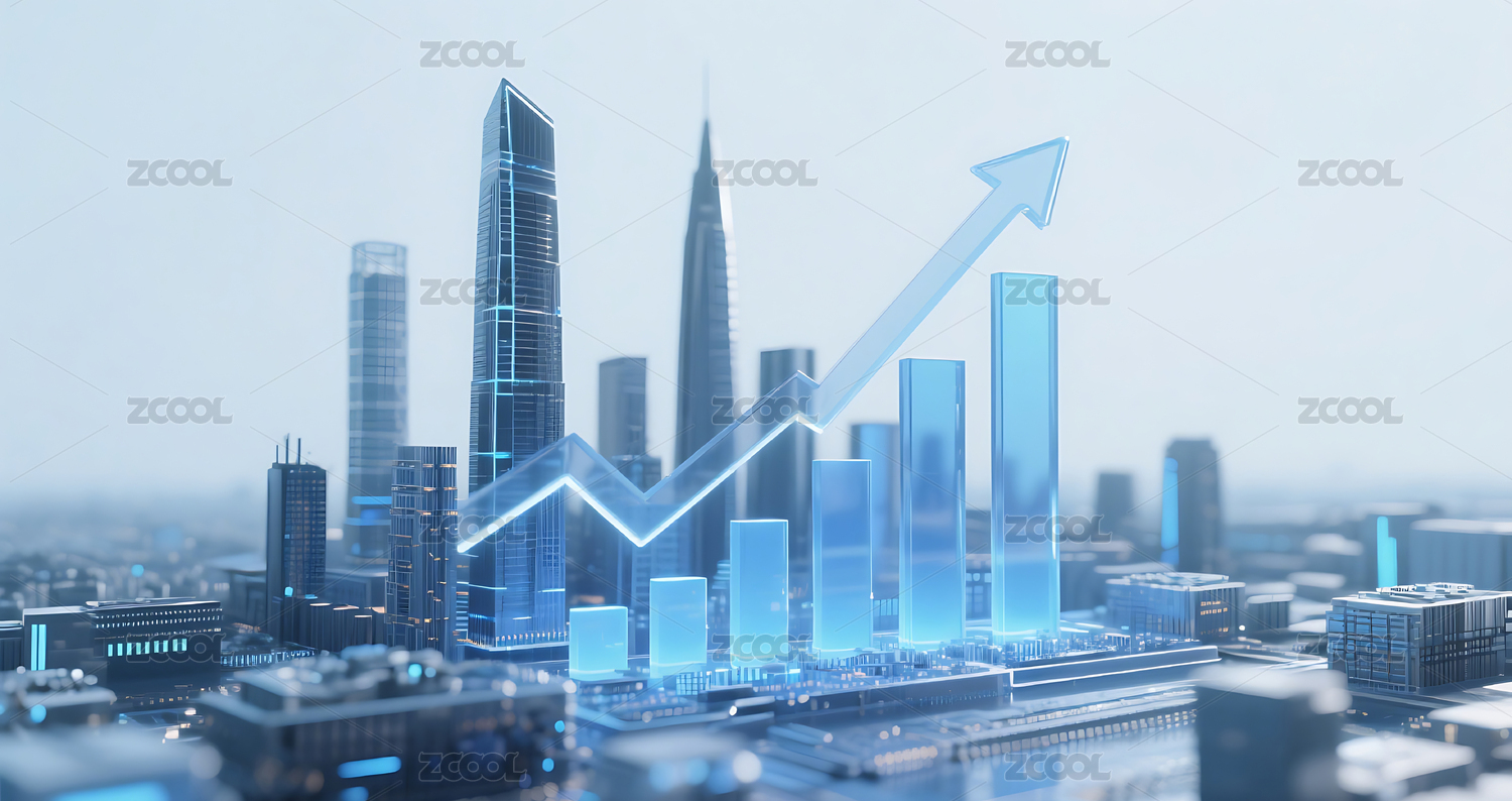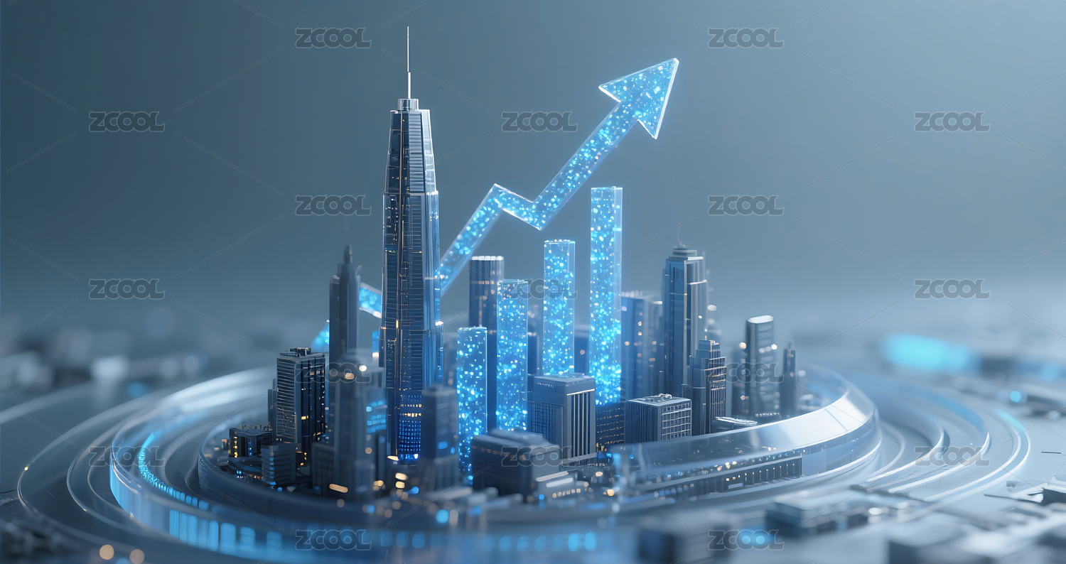 蓝色金融经济柱状图增长箭头城市建筑背景