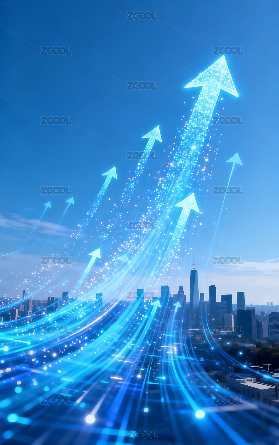 蓝色金融经济柱状图增长箭头城市建筑背景