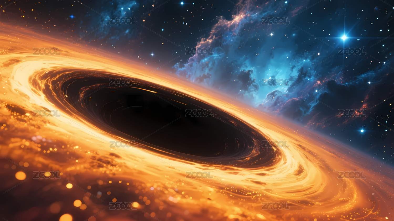 黑洞黄蓝星云深邃星空