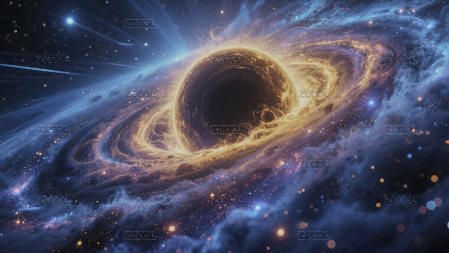 宇宙深邃蓝金黑洞景象