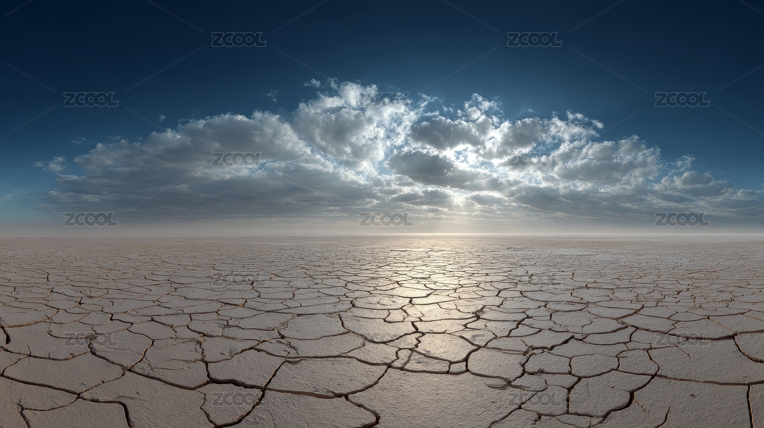 干旱土地龟裂景象与云层