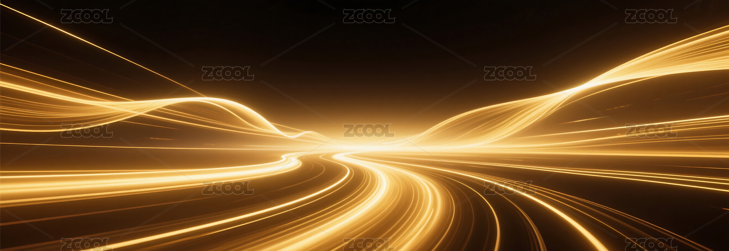 金色流动光线光效商务科技主视觉背景