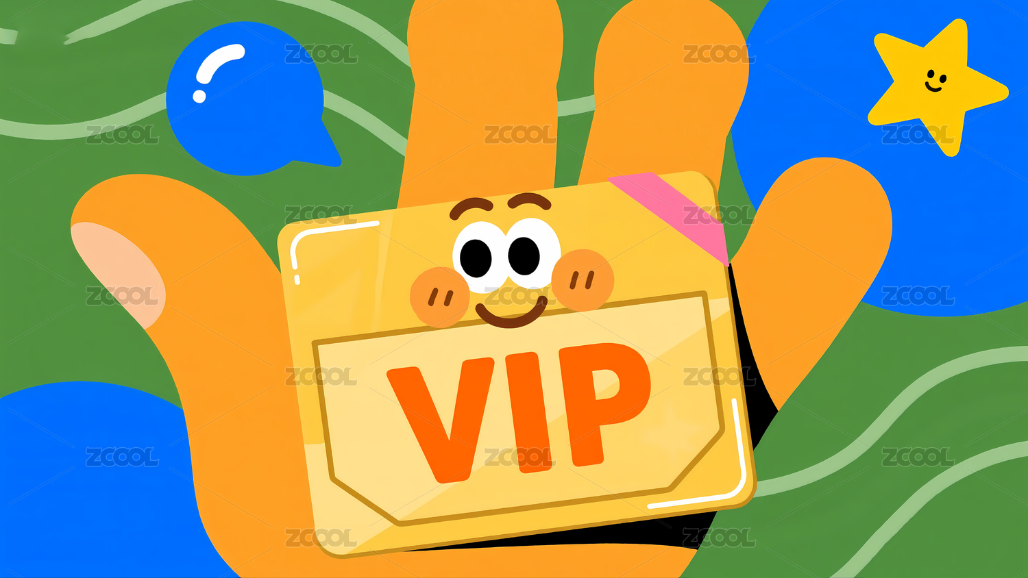 卡通手掌持VIP卡背景色彩斑斓