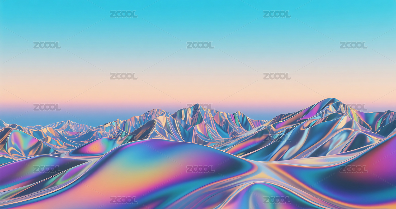 流体渐变镭射金属箔艺术山脉背景