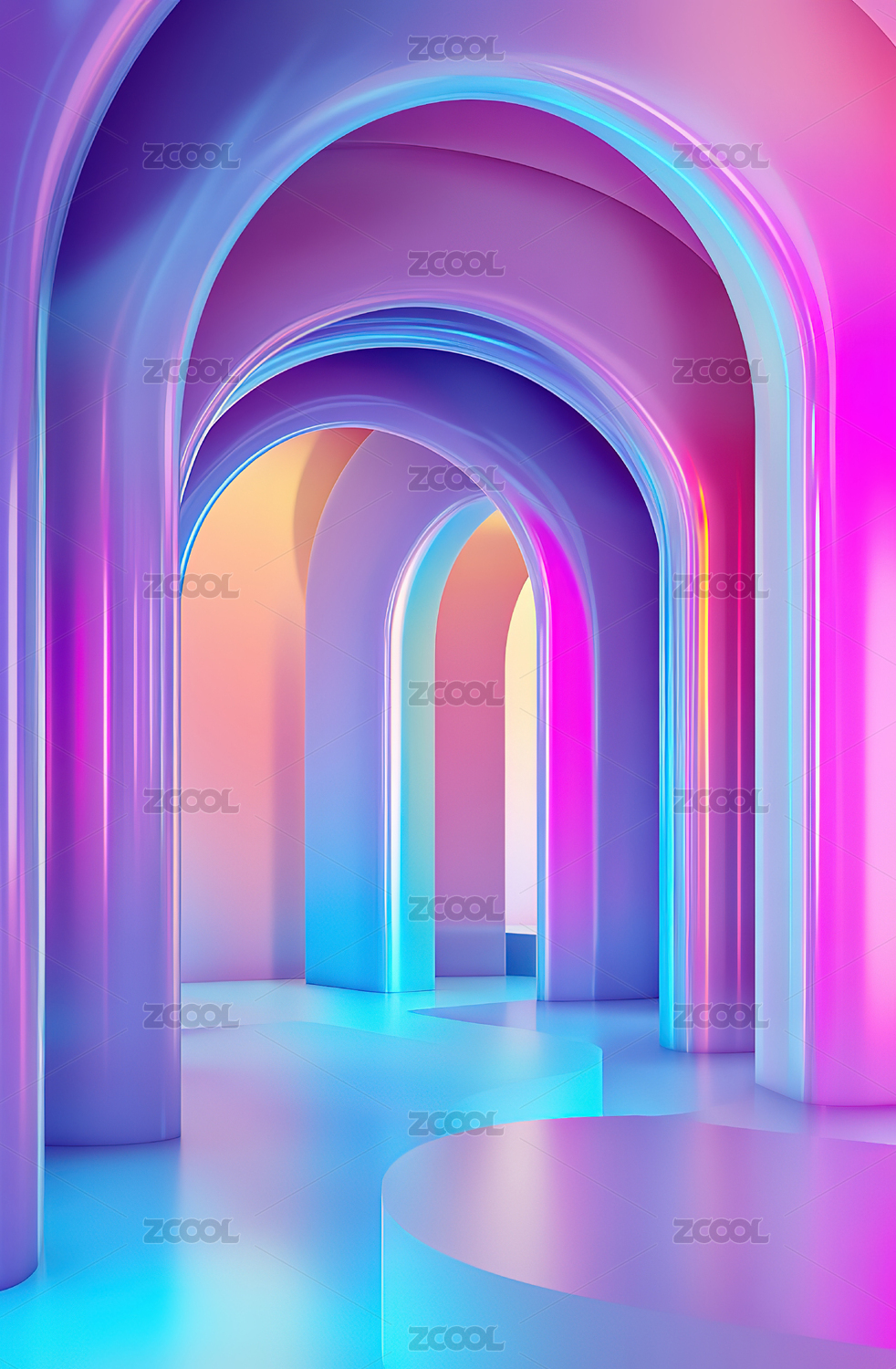 未来主义的彩色拱门走廊