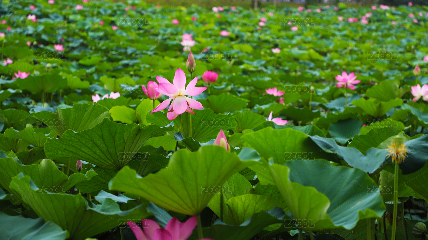夏日里大片盛开的荷花