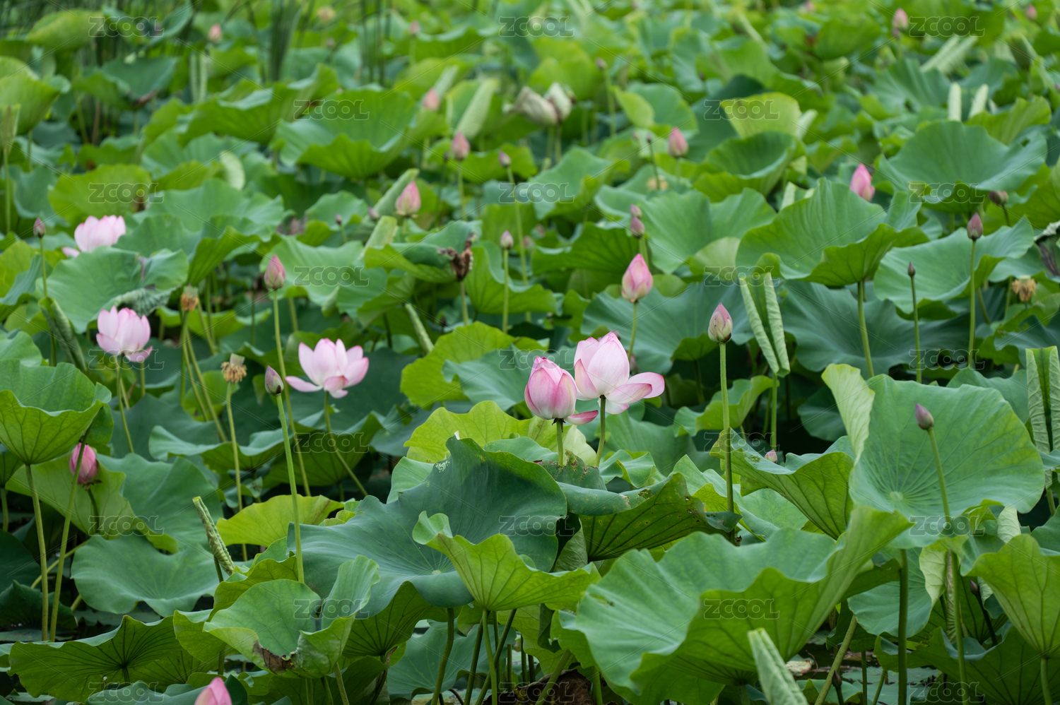 荷花盛开的池塘景象