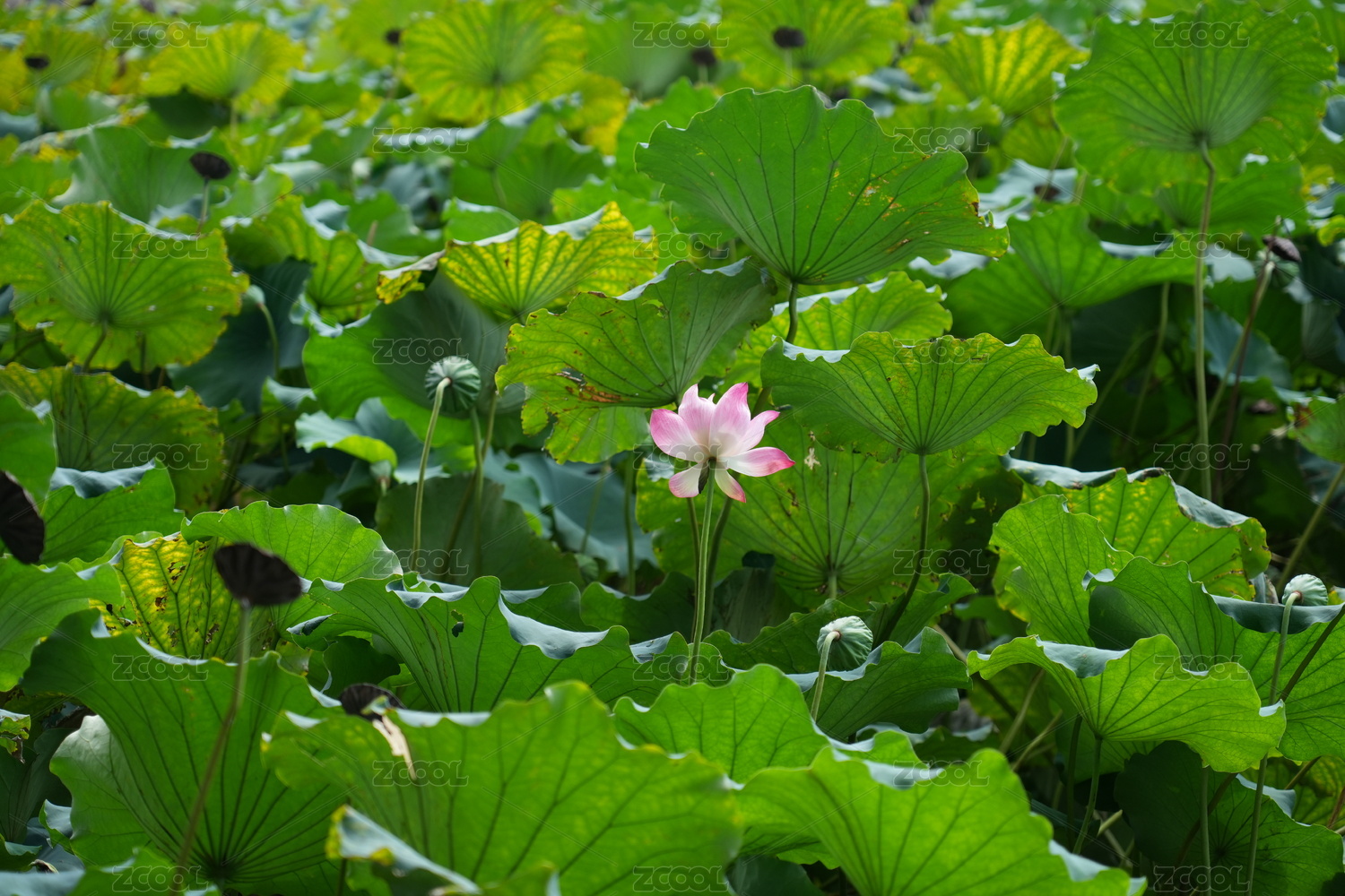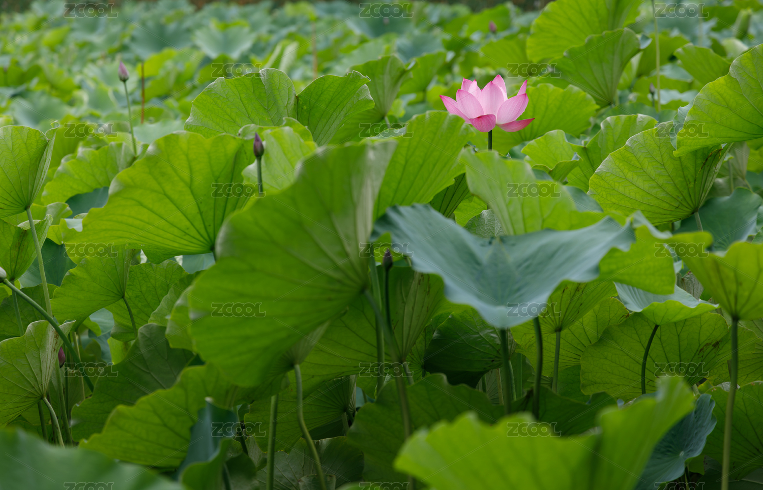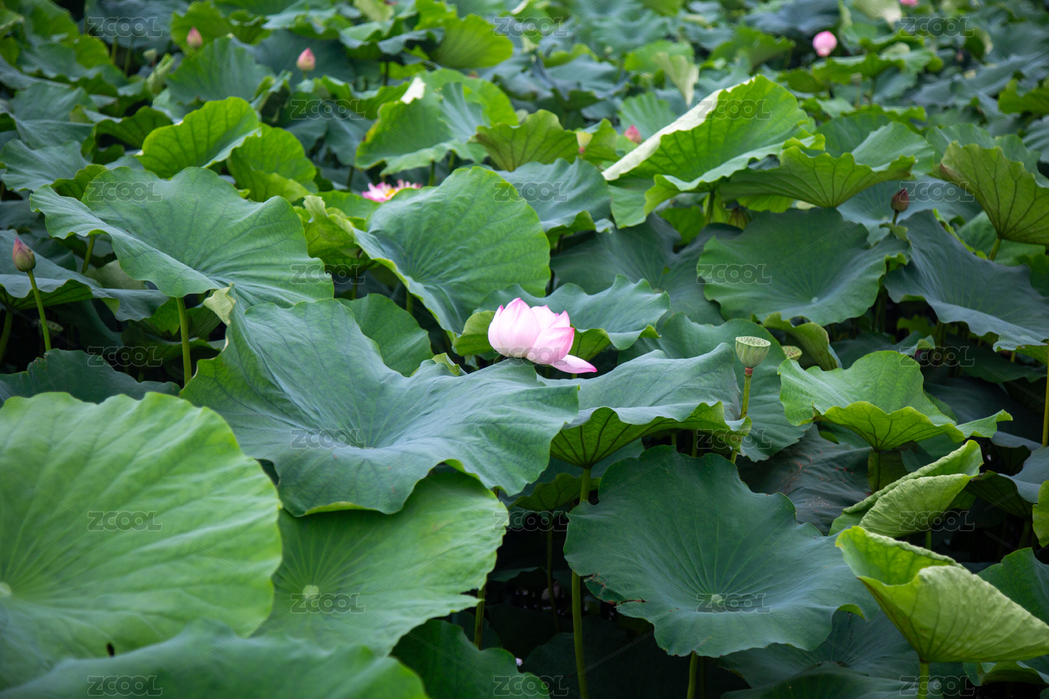 一大片被荷叶覆盖的荷花池