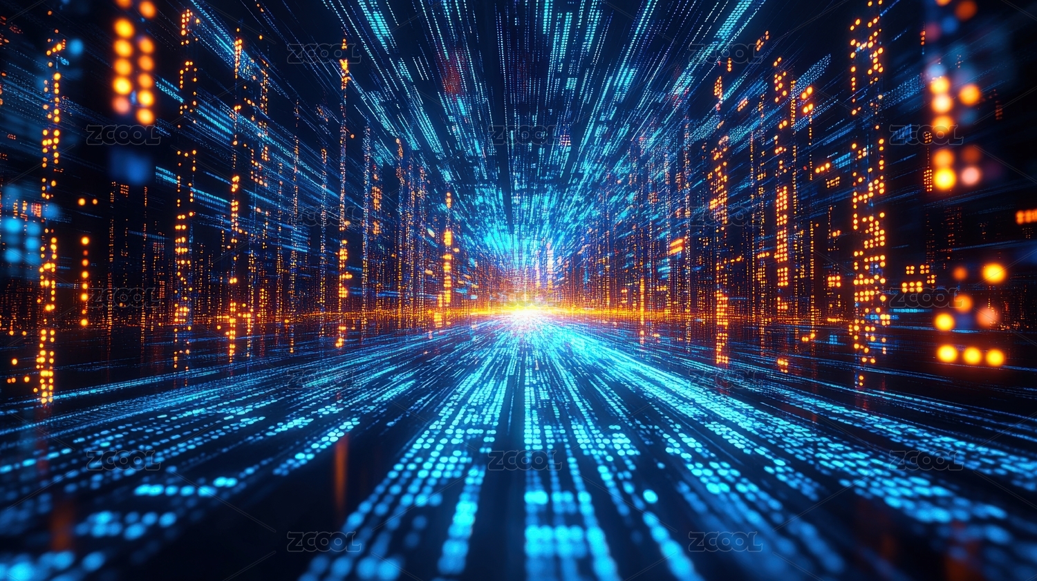 抽象的数字网络数据概念与蓝色和橙色