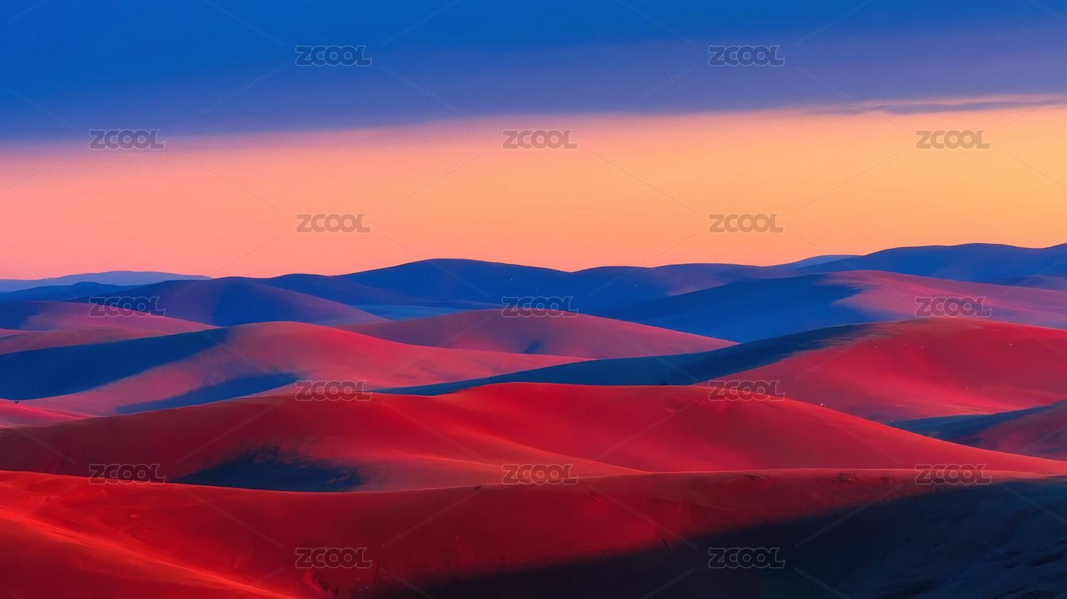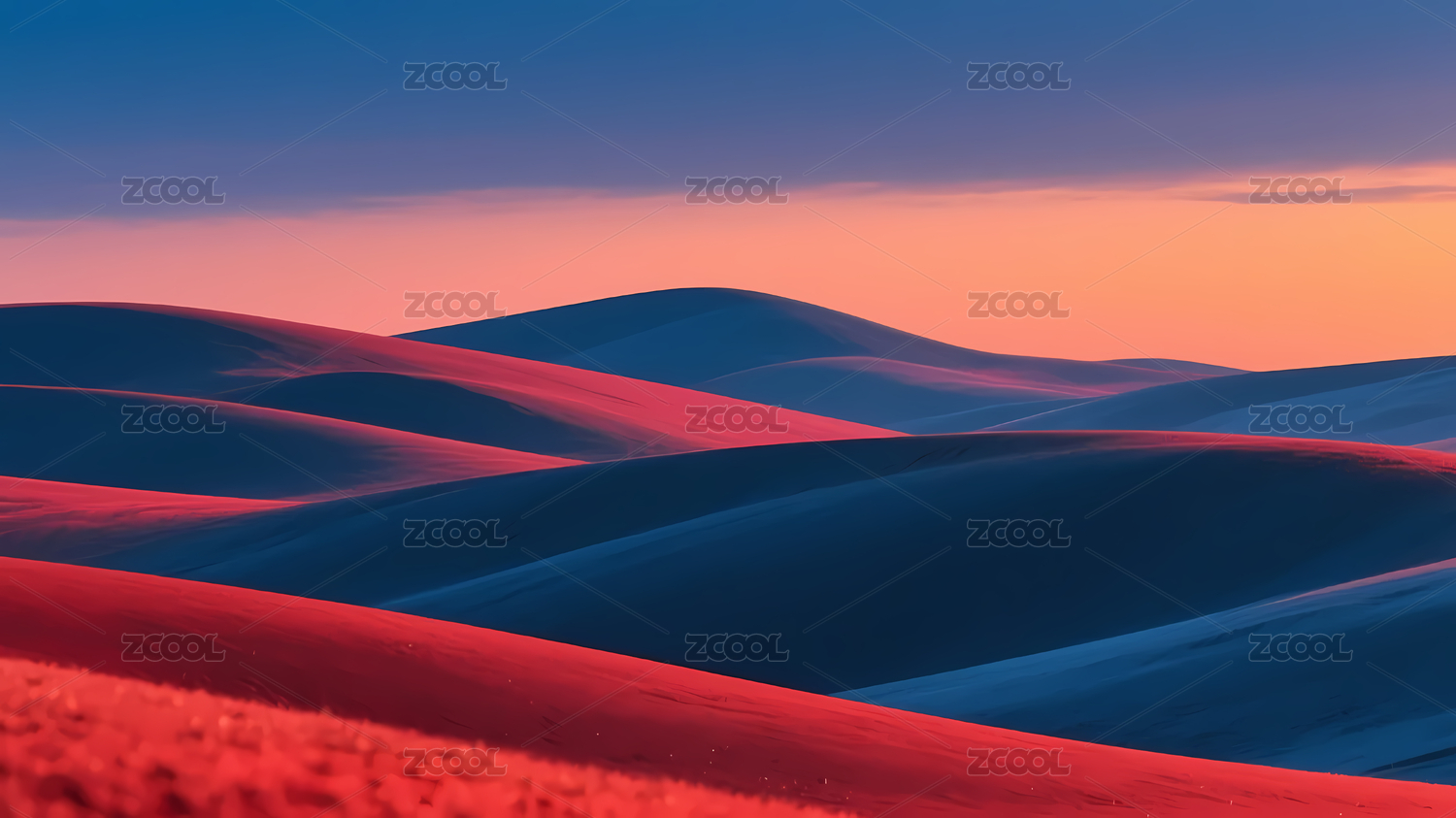 宁静,粉色,橙色,渐变,天空,自然,山脉,远处,沙丘,起伏