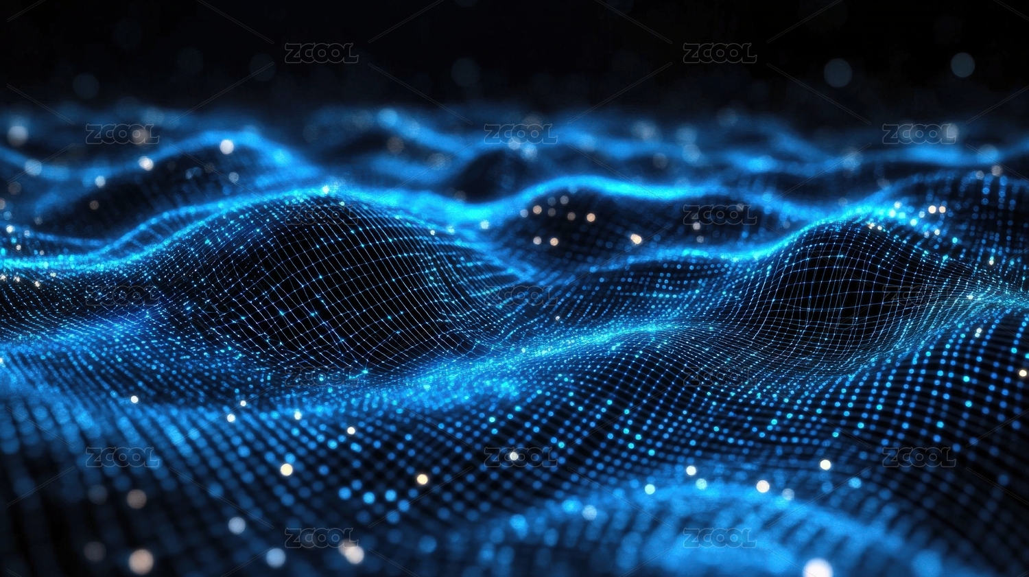 蓝色网格波浪科技商业背景场景