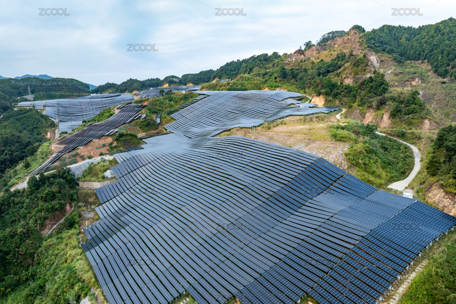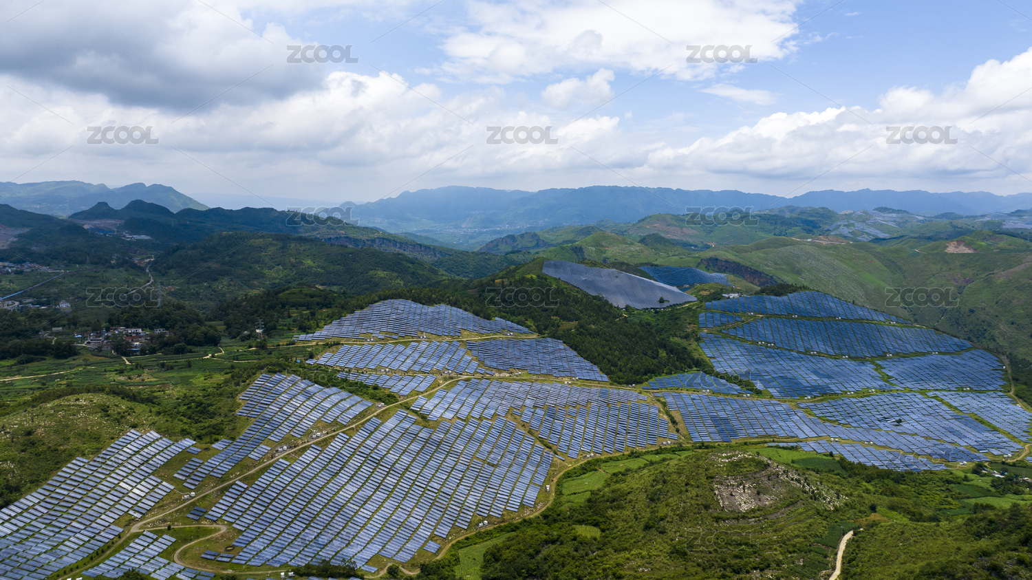航拍山地光伏发电