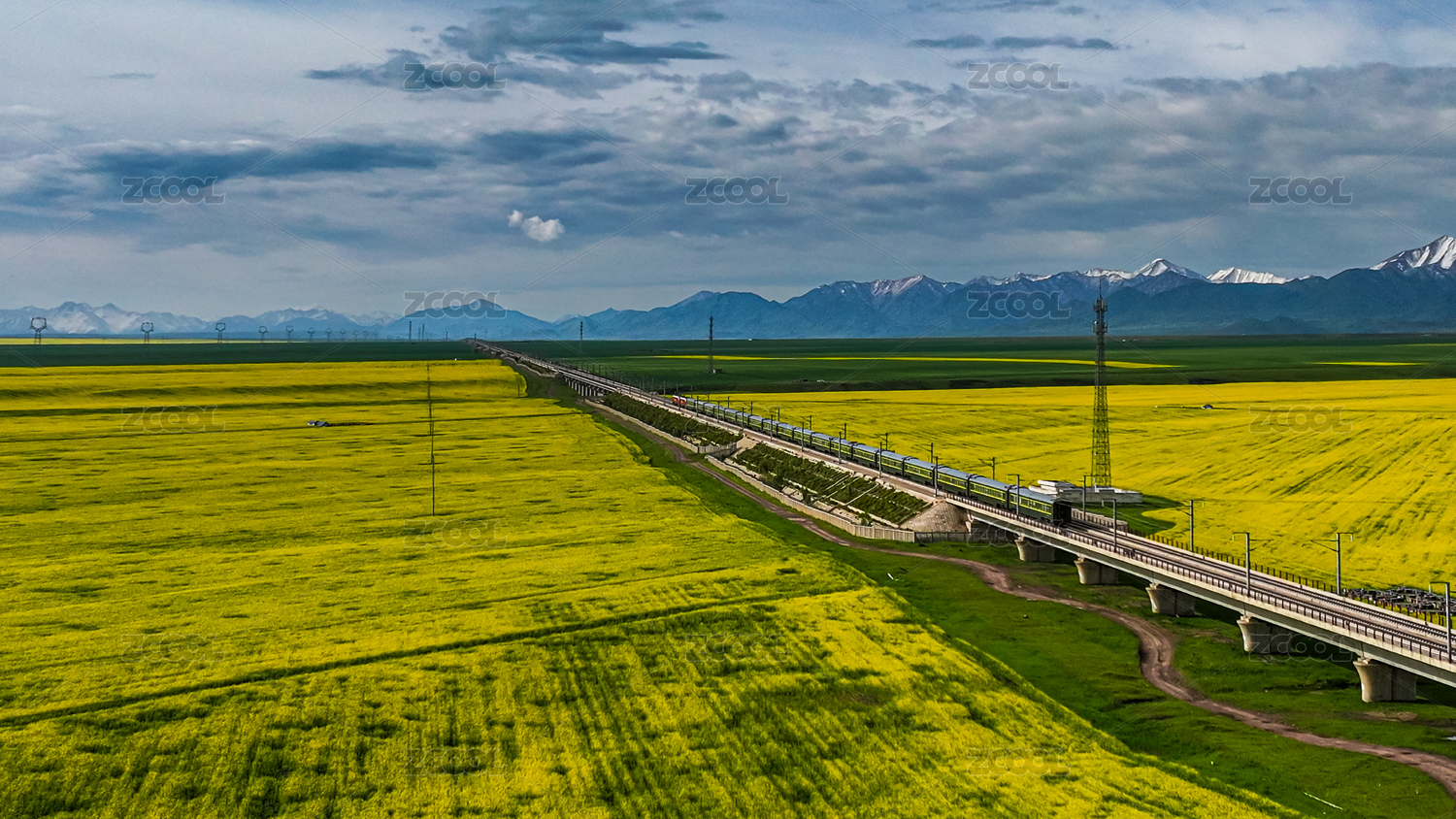 花海,高铁,自然,风景,风光,油菜花,天空,云彩