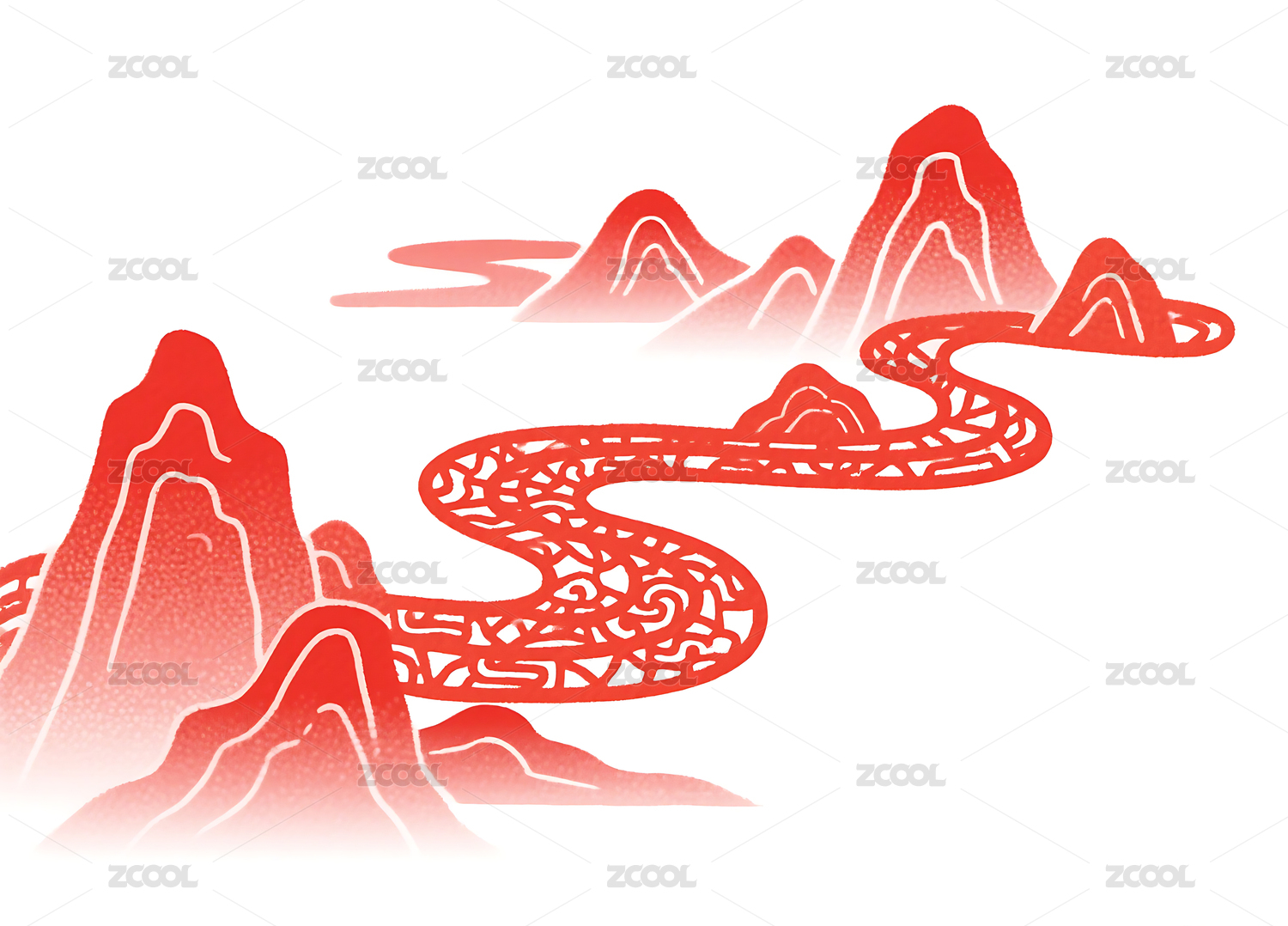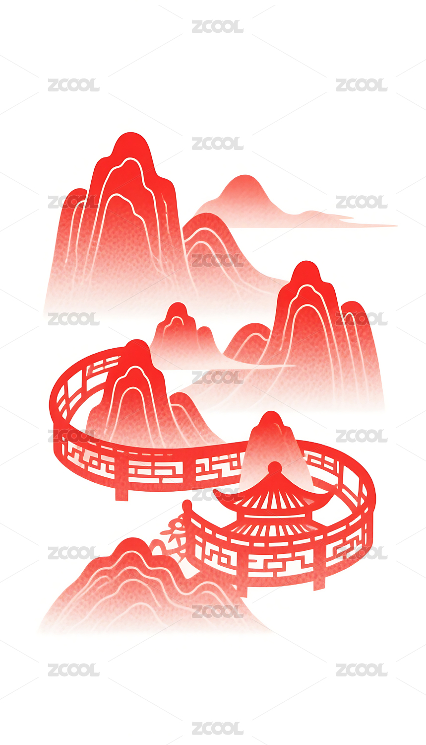 红色,传统,山水,剪纸,素材,元素,春节,过年,喜庆,花纹