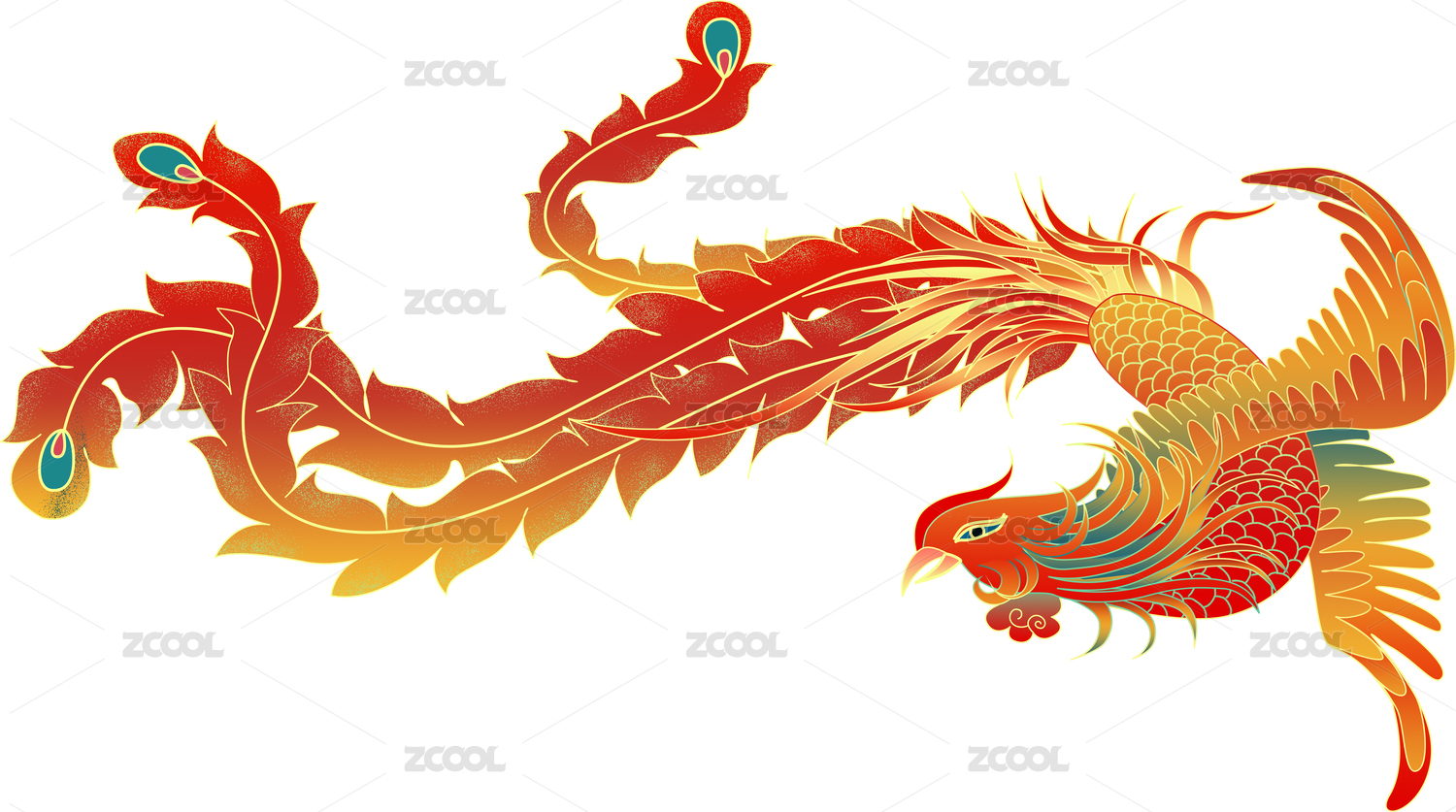 展翅飞翔的凤凰矢量插画元素