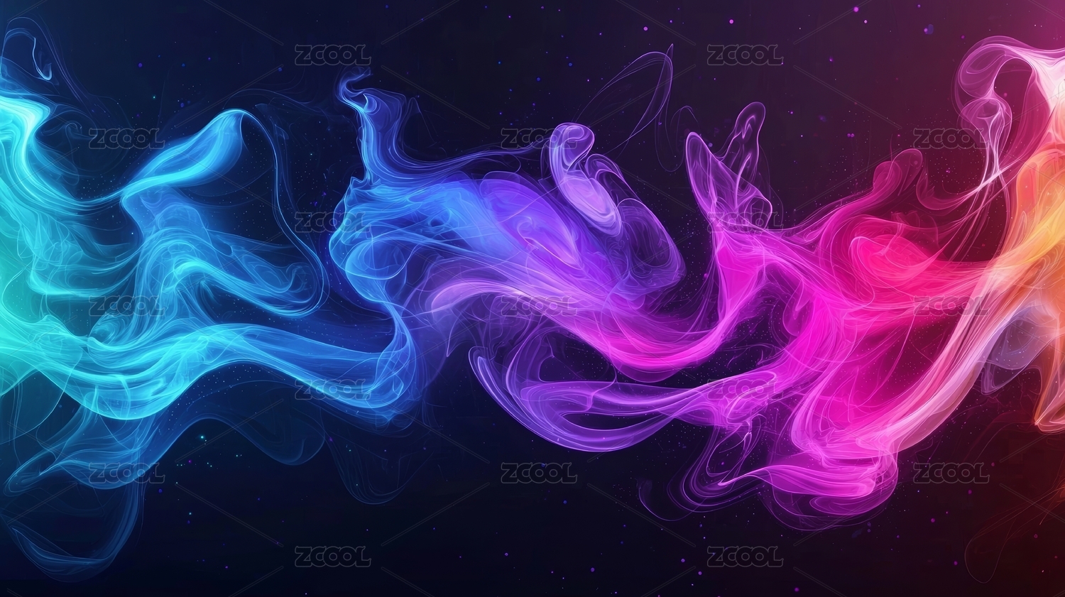 蓝色和紫色的烟雾在深色背景下形成的抽象图