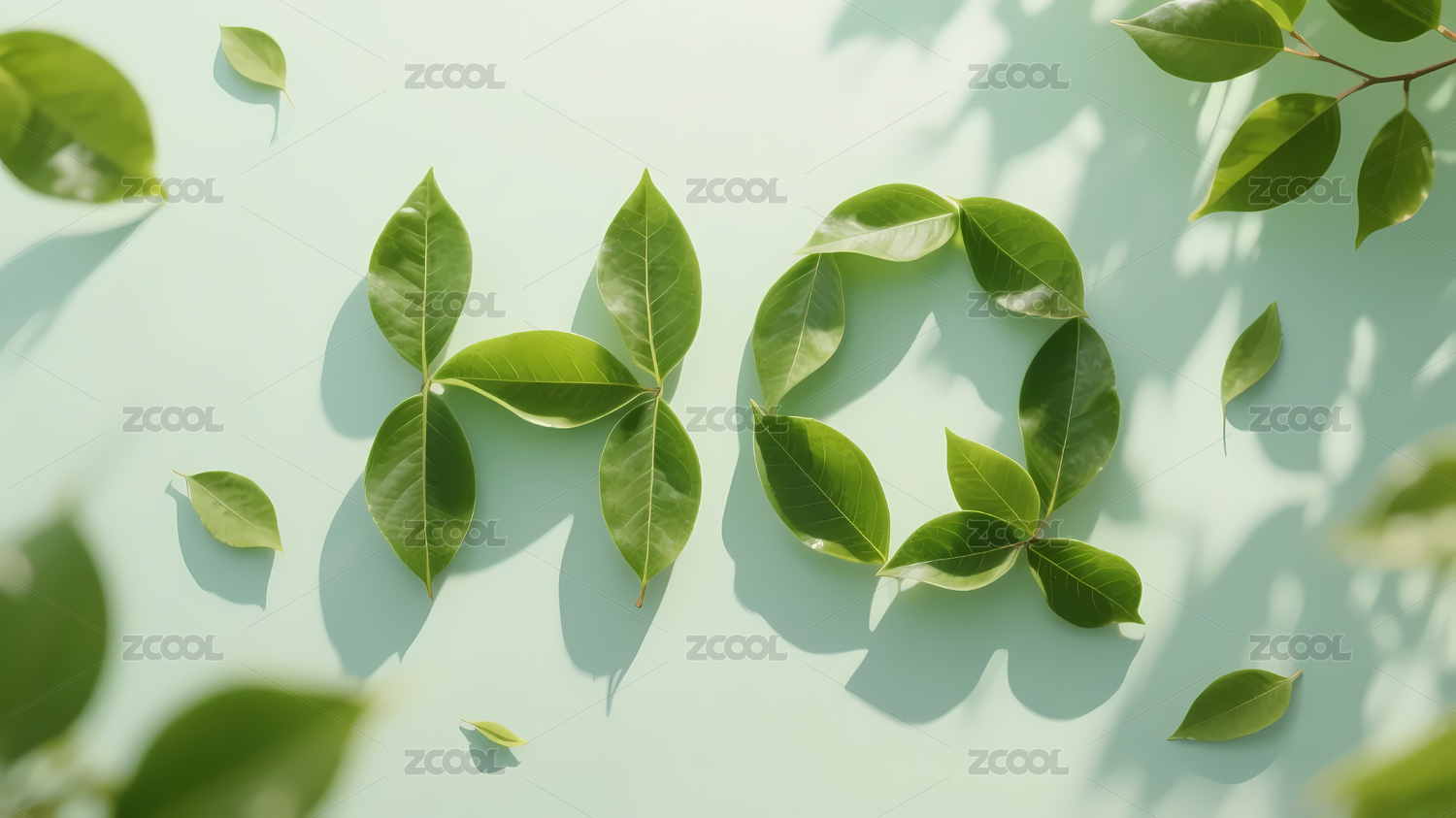 主视觉,飘叶,绿底,清新感,装饰,背景,场景,叶片,绿色,简约