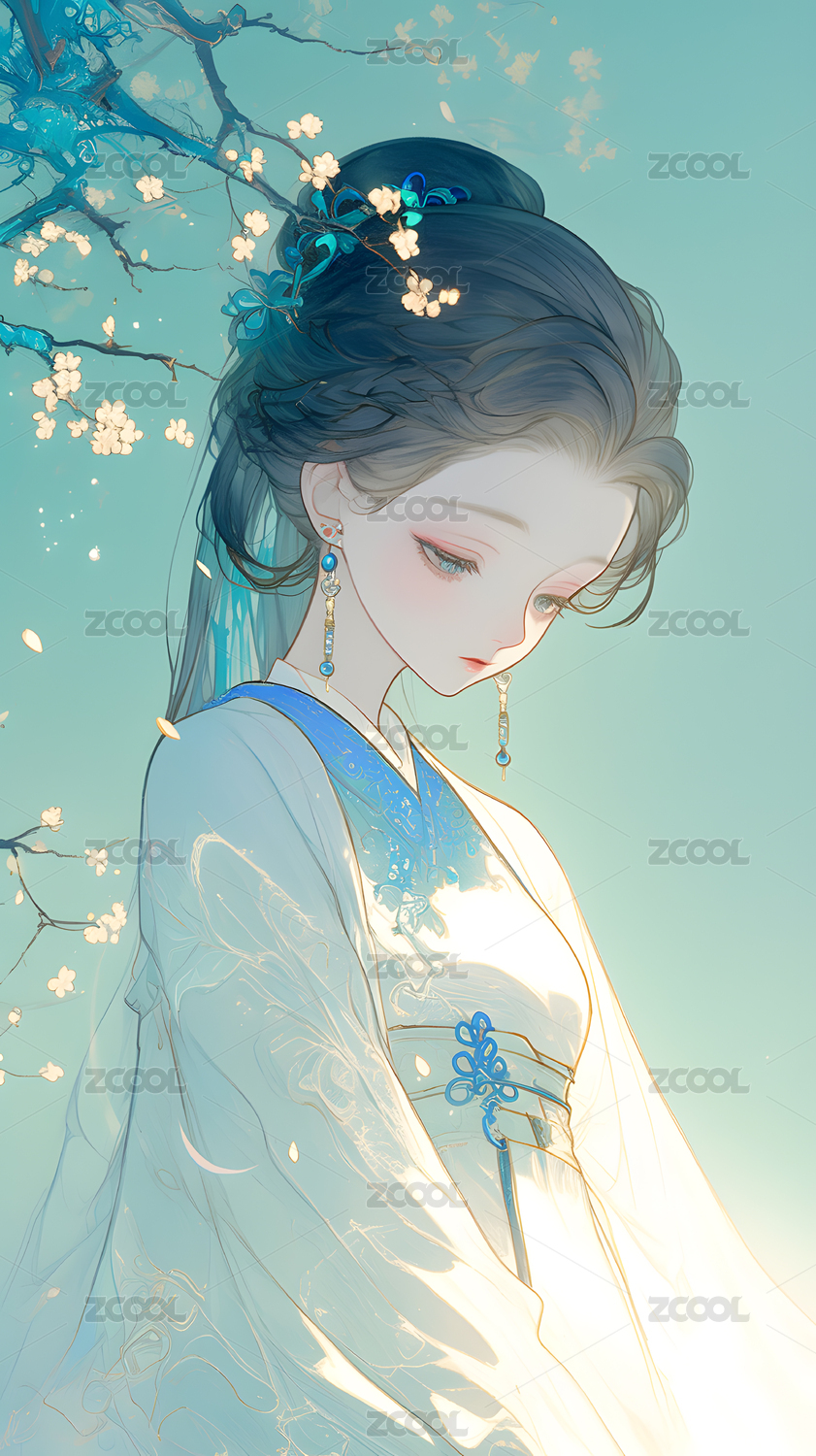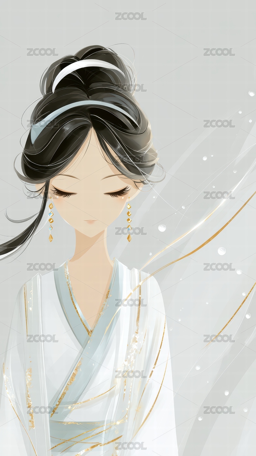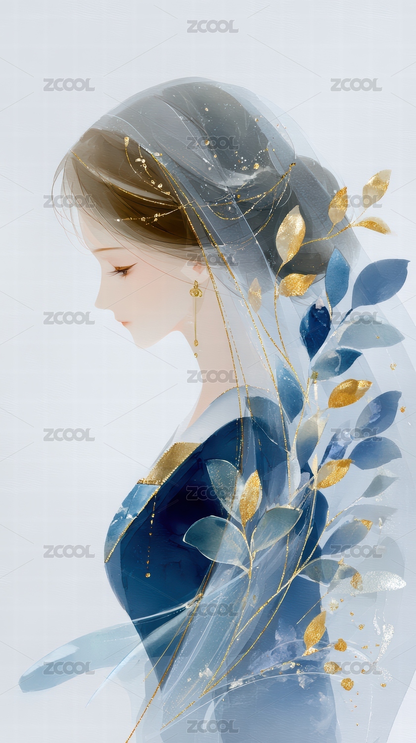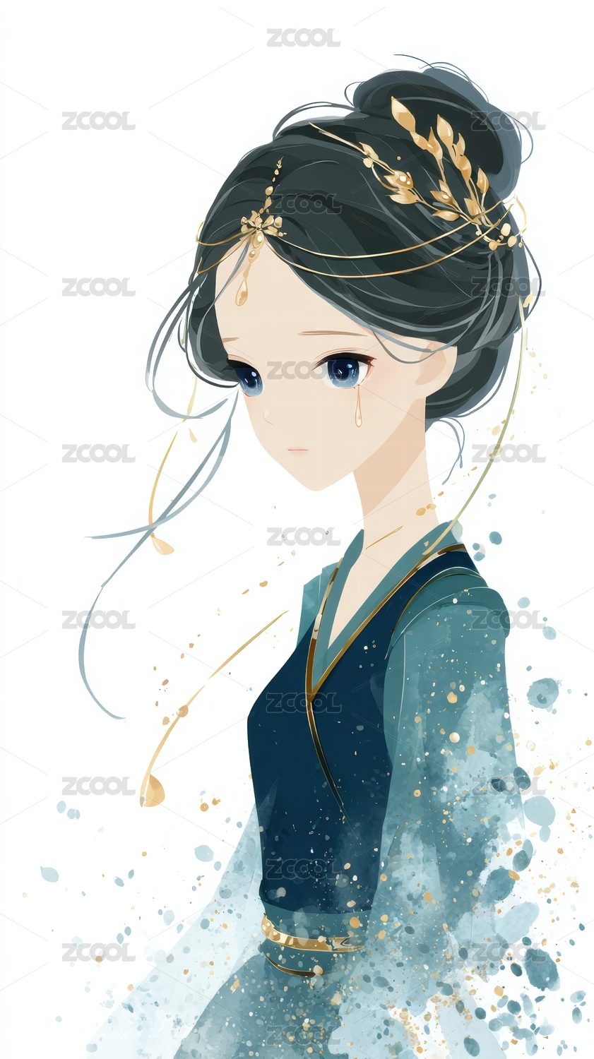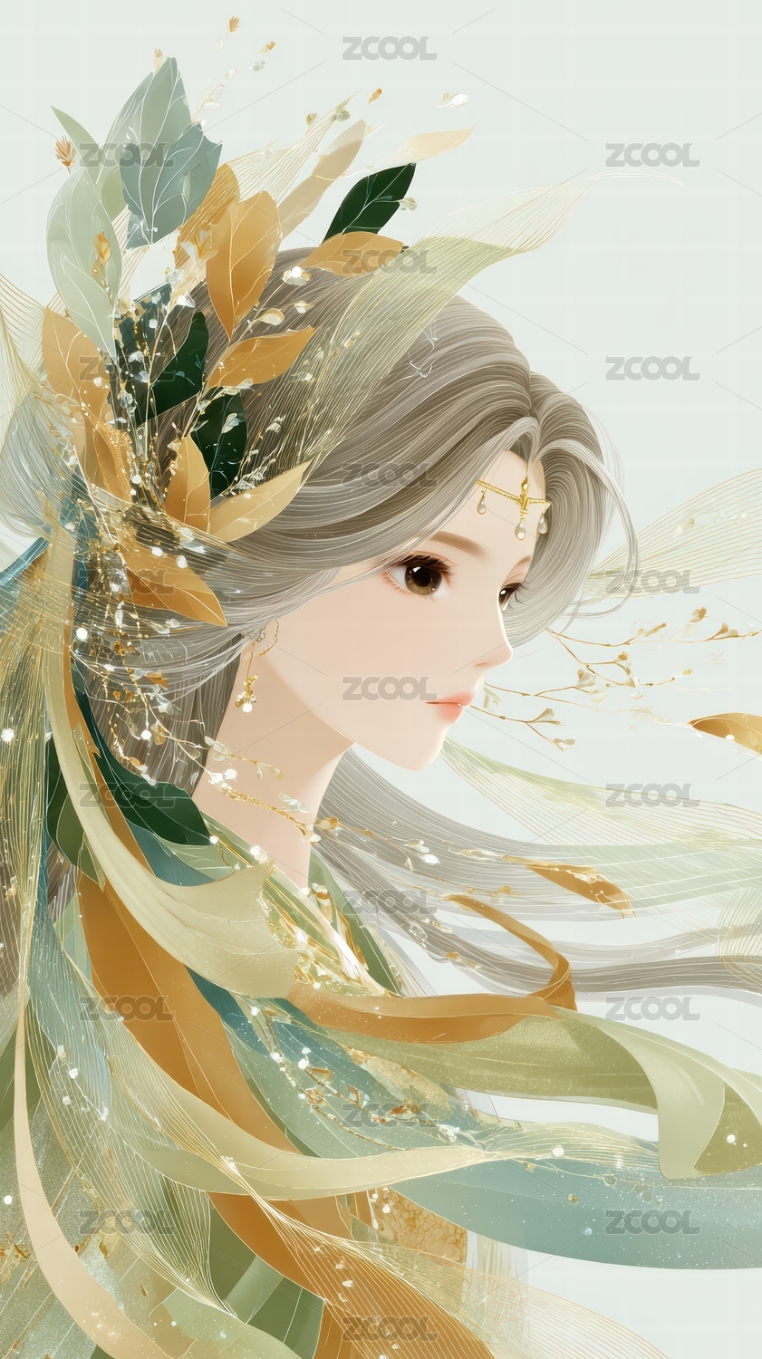 长发,金色,古装,女子,服饰,头饰,花卉,飘带,柔美