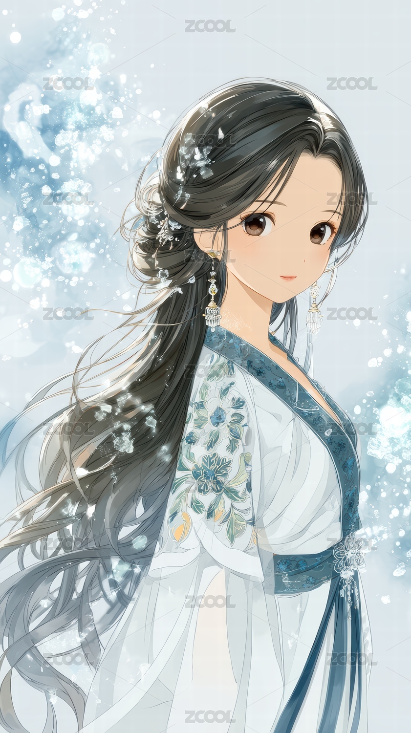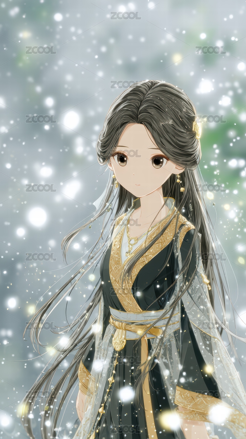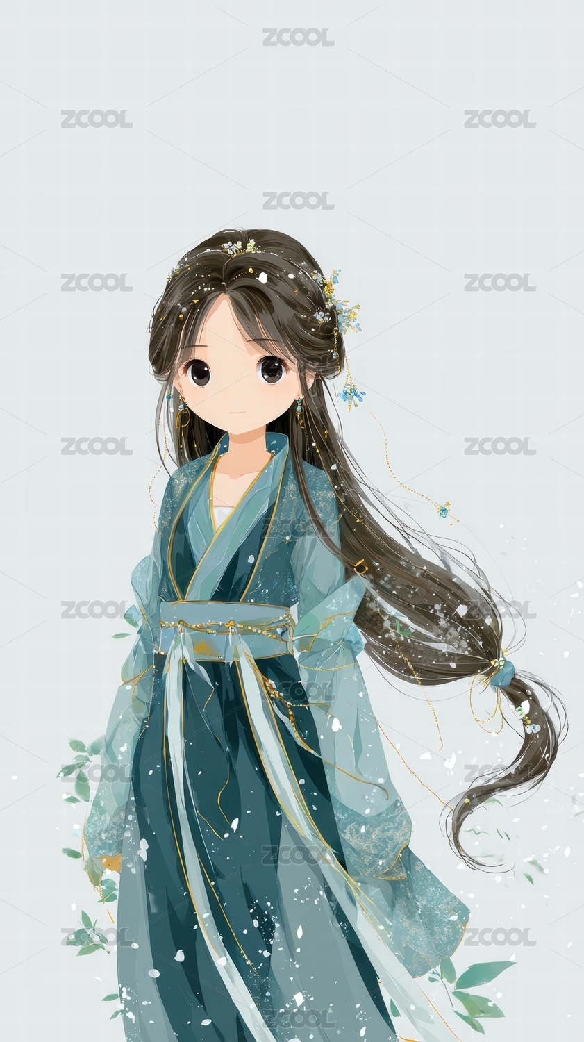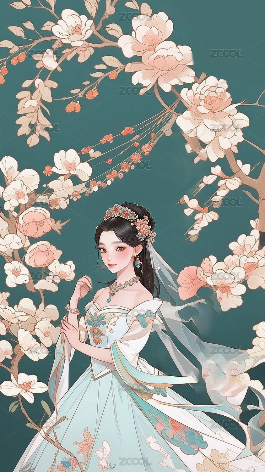 长发,金色,古装,女子,服饰,头饰,花卉,飘带,柔美
