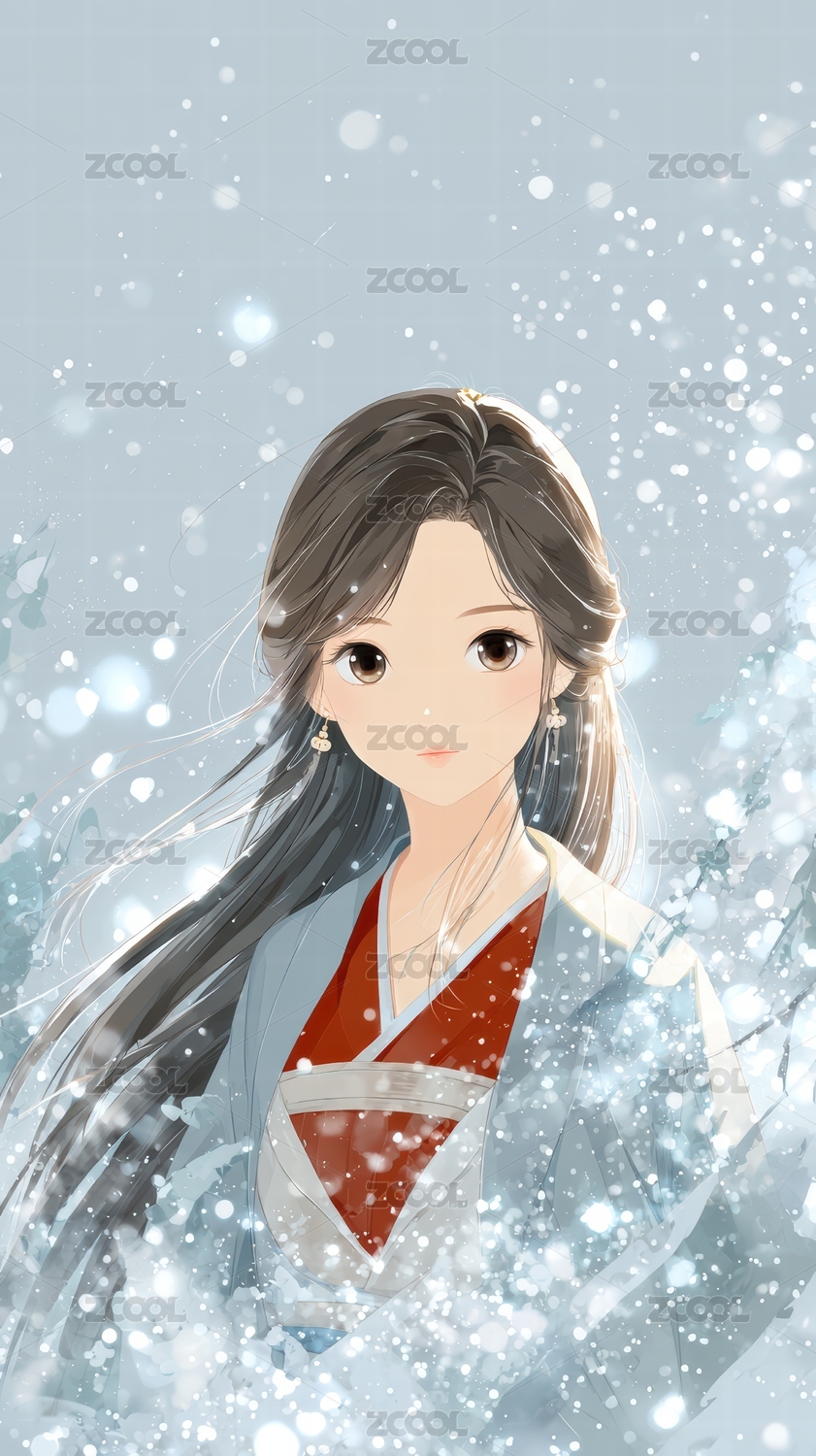 唯美,女子,长发,雪景,古装,雪瓣,服饰,冬季