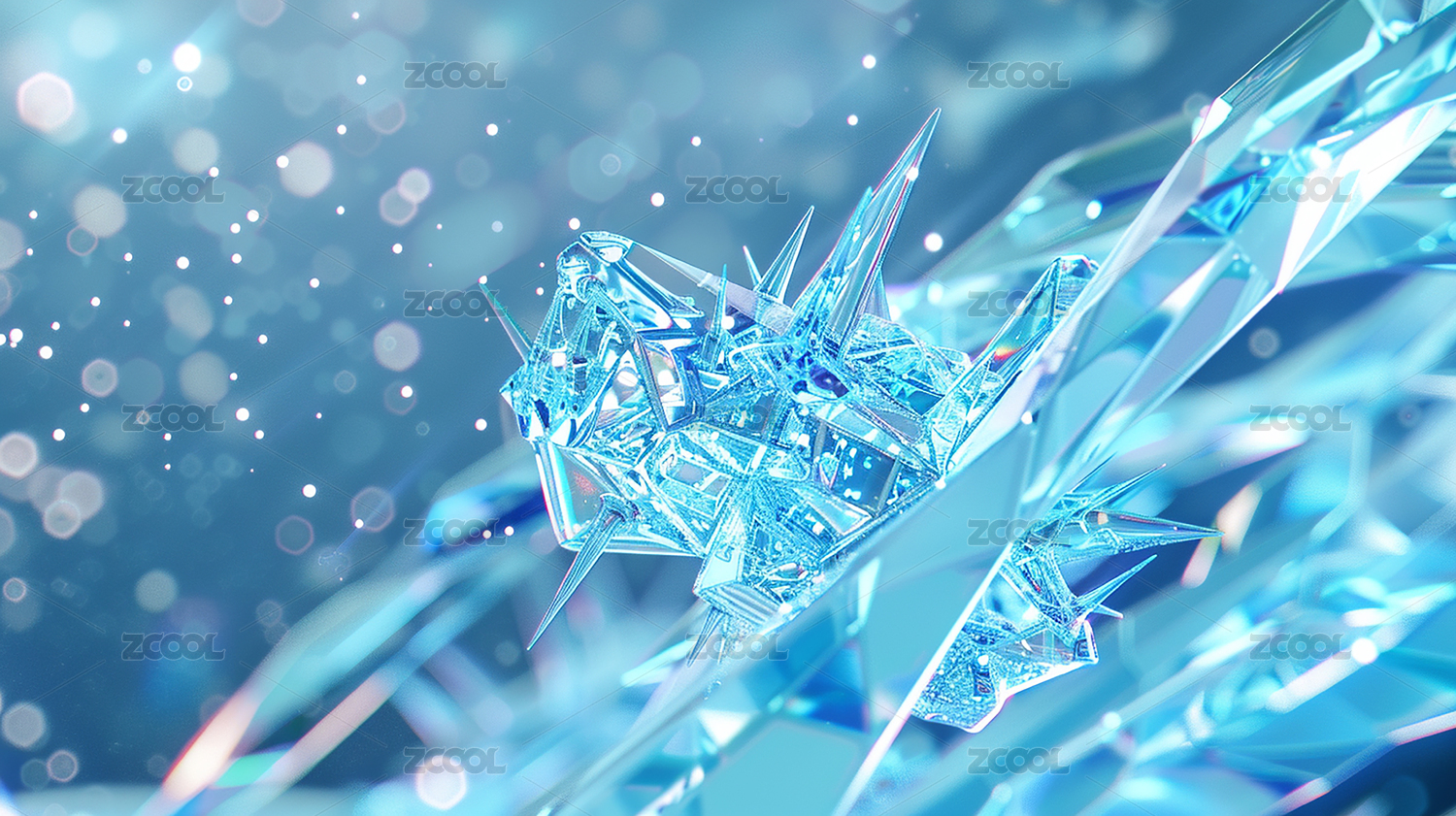 水晶结构,未来科技,梦幻,科技感,几何形状,光斑,透明,蓝色调,高科技,未来主义
