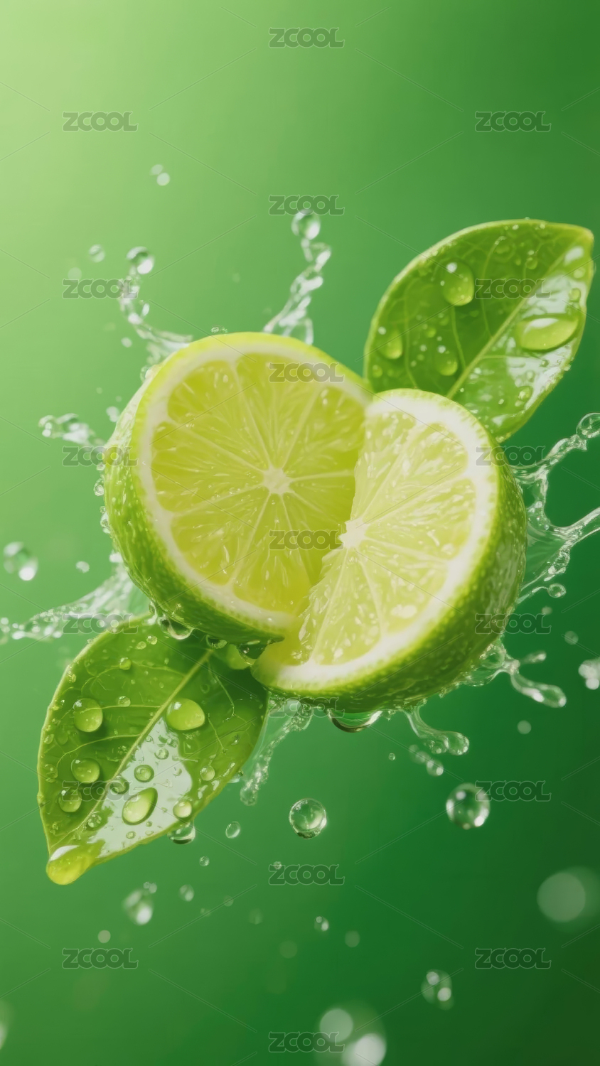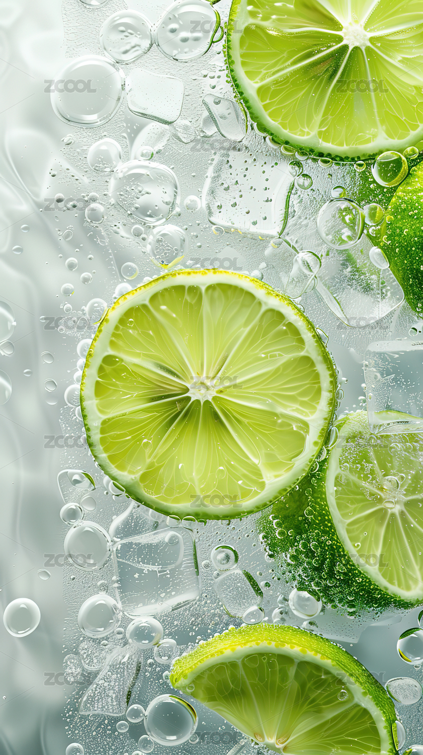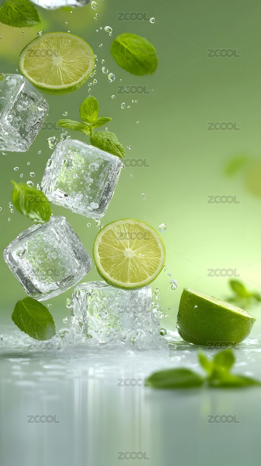 主视觉,餐饮,青柠,清新,水下,漂浮,冰块,绿色,水果,清凉