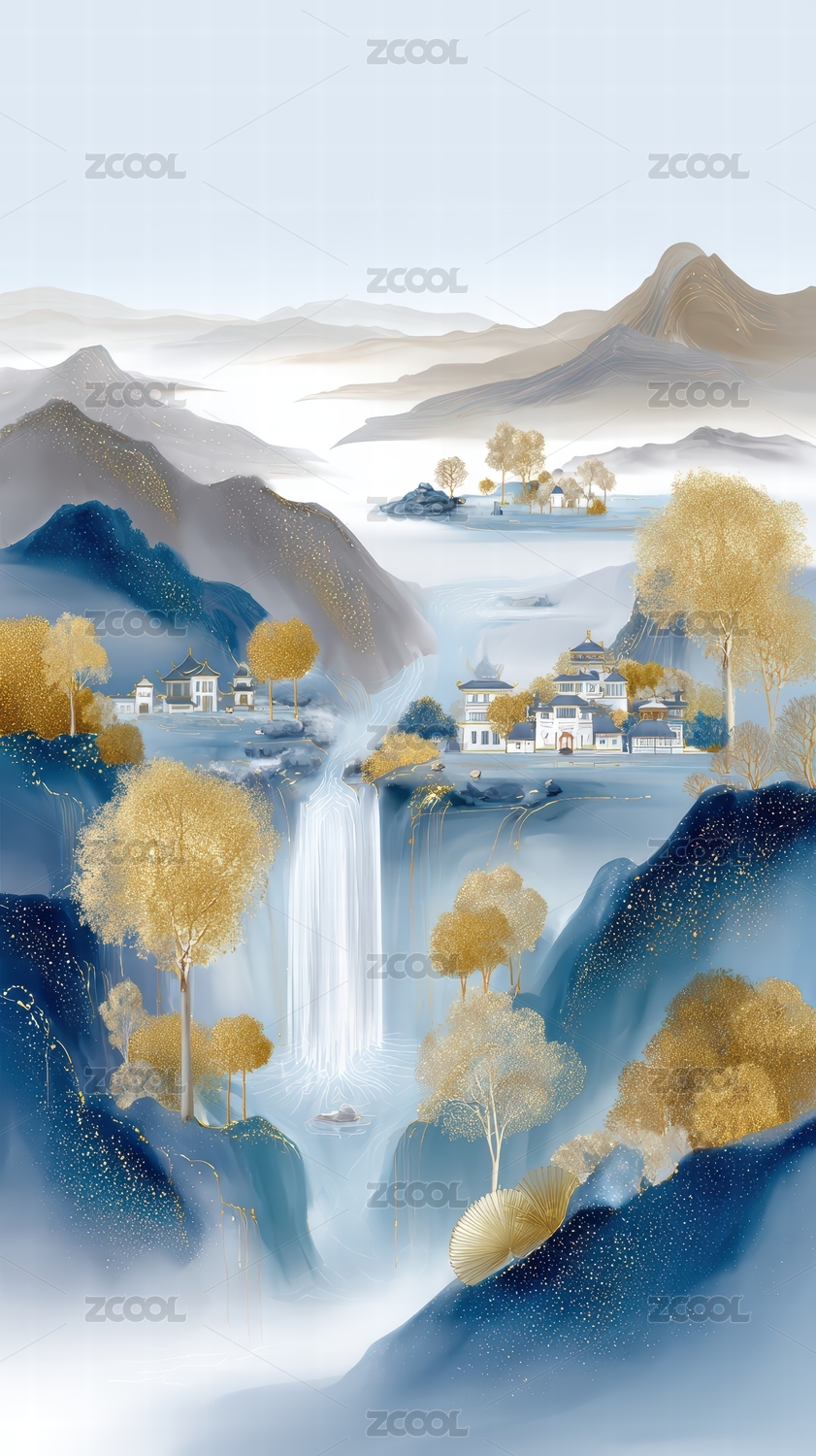 秋韵山水峰林瀑布金黄盛宴壁纸背景素材