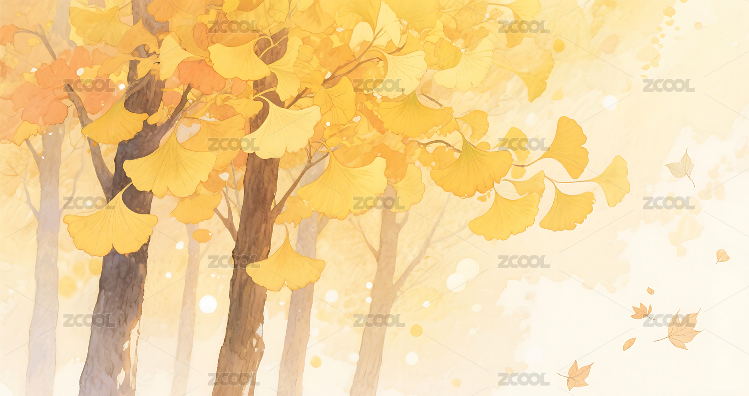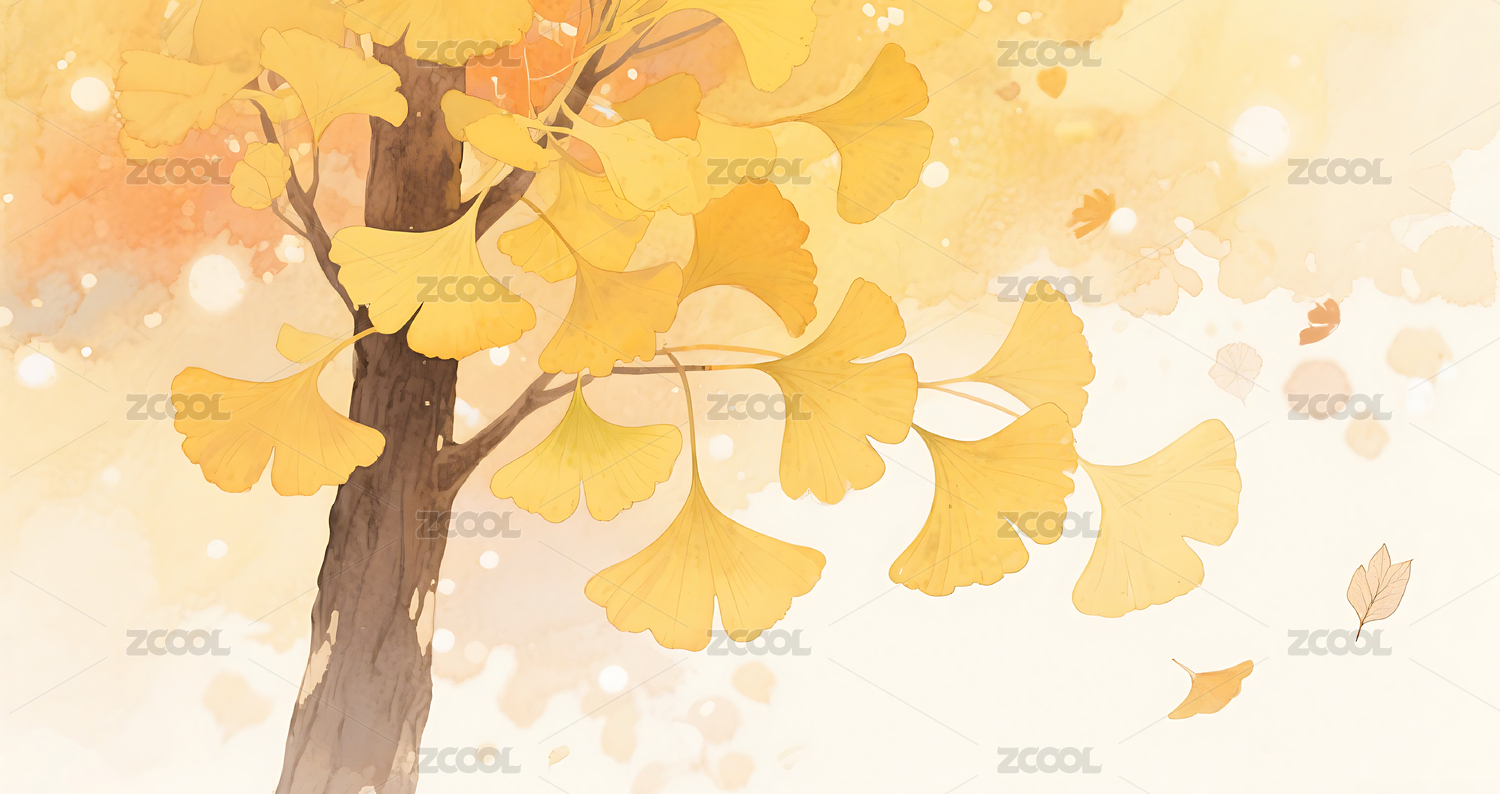 秋天晕染银杏树叶插画背景