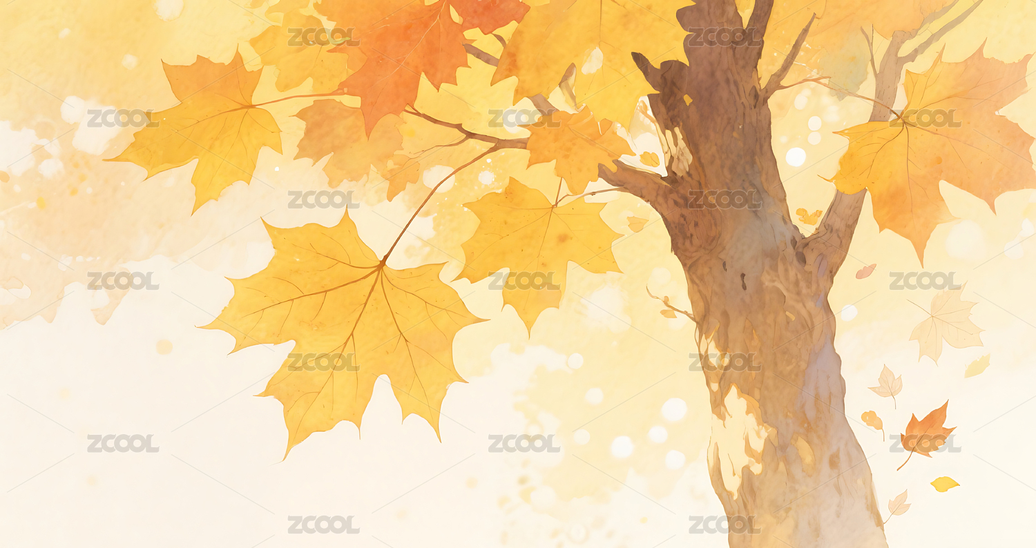 秋天梧桐树叶晕染插画背景