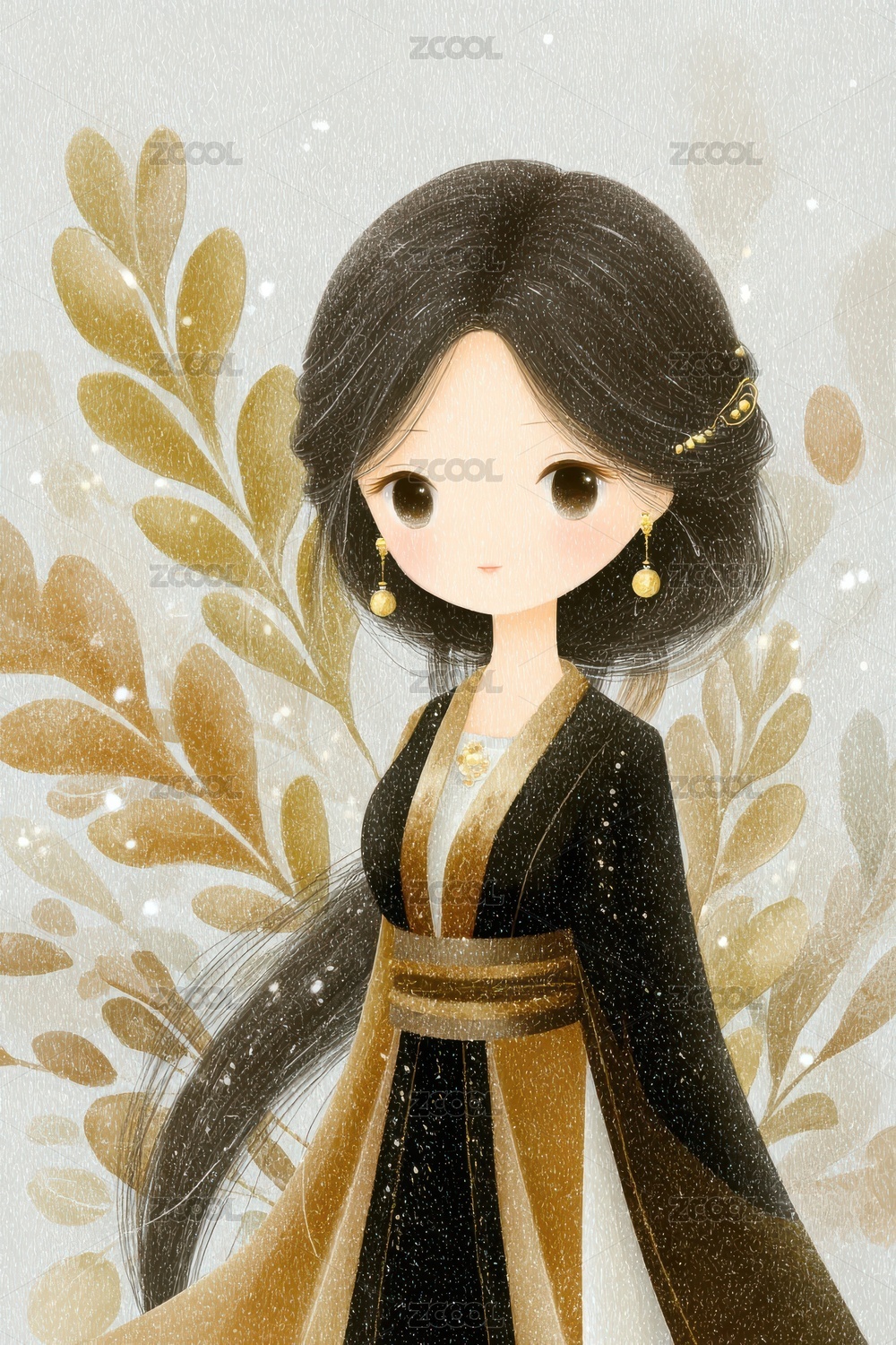 优雅古风女子身着华丽服饰
