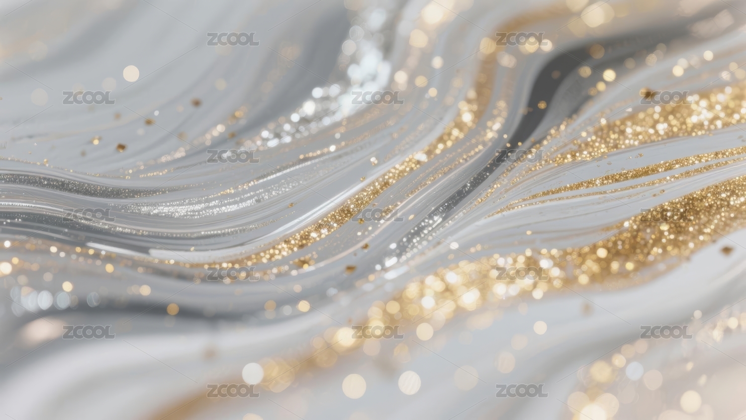 流动的液体与金色闪光