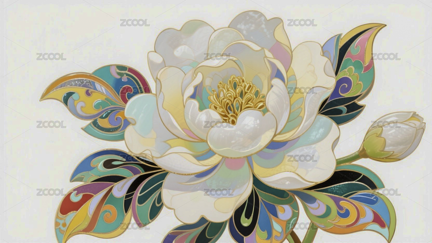 牡丹彩色装饰背景场景
