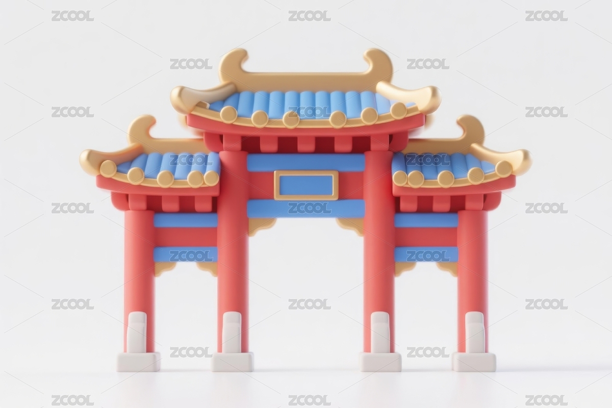 主视觉,中式,牌坊,古建,风格,场景,彩绘,斗拱,飞檐,红柱