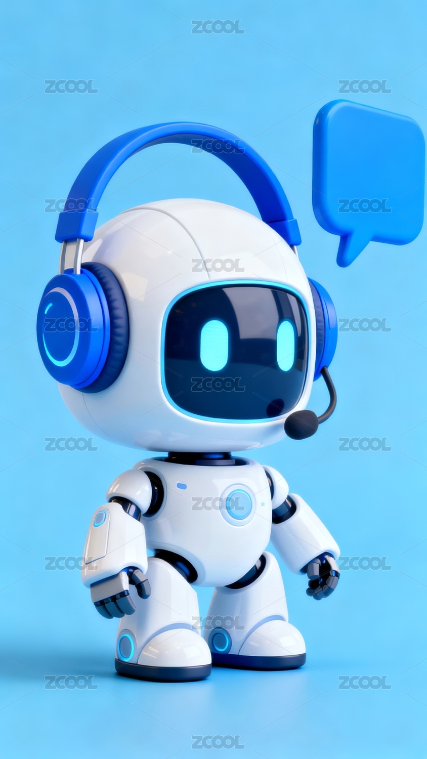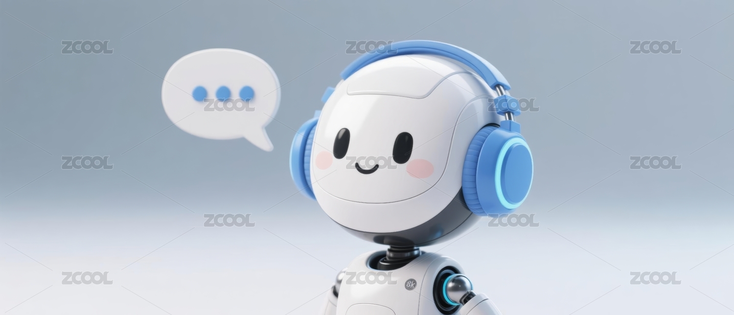 主视觉,机器人,智能,科技,交流,场景,耳机,对话,蓝色,白色