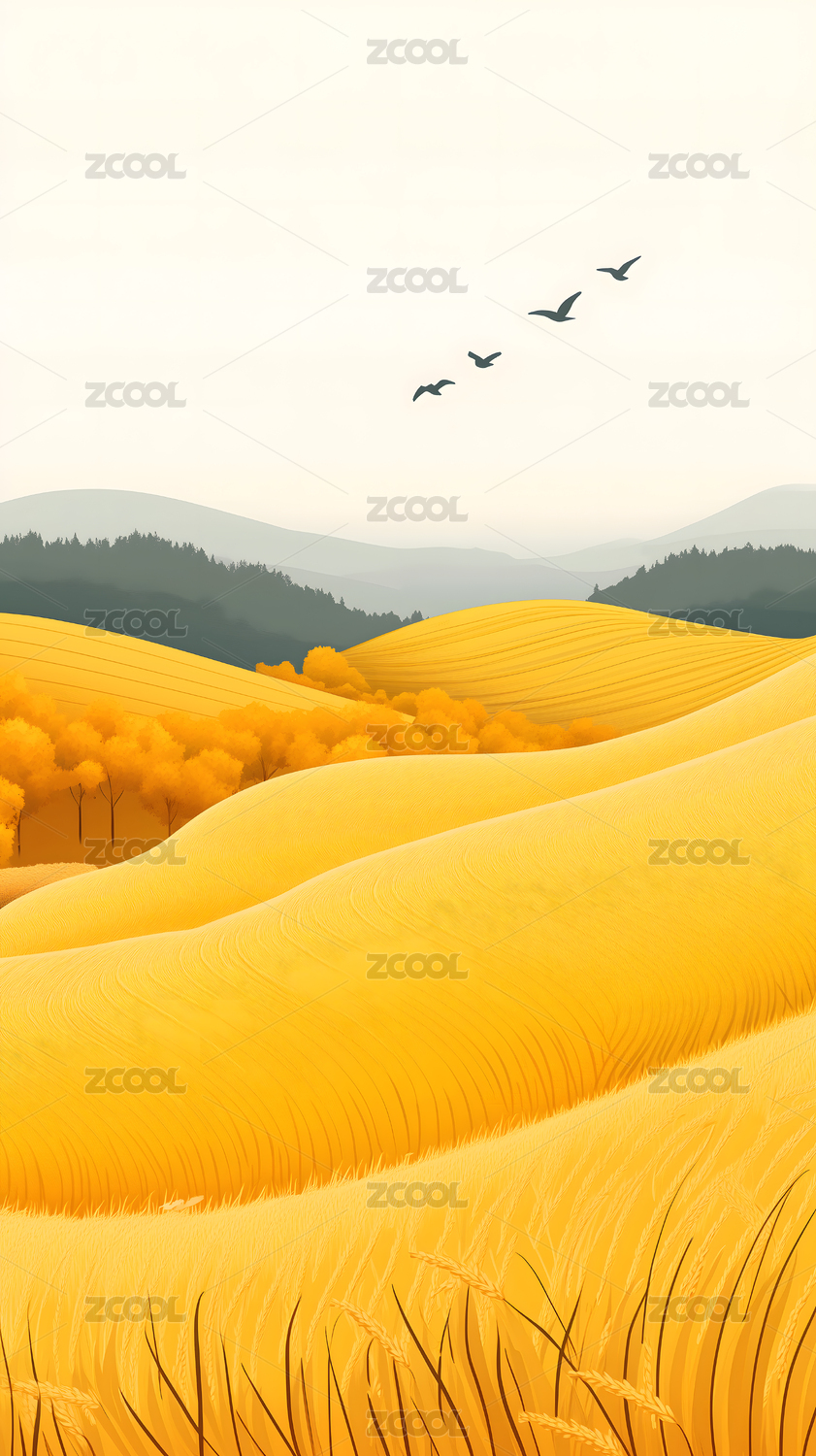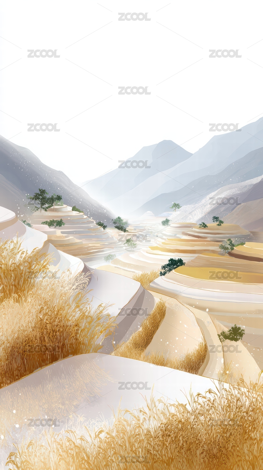 自然,艺术,树木,线条,宁静,远山,梯田,金黄,稻穗