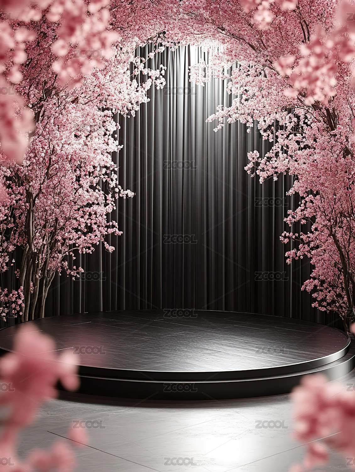 3D蓝色小清新鲜花拱门圆形电商产品展台