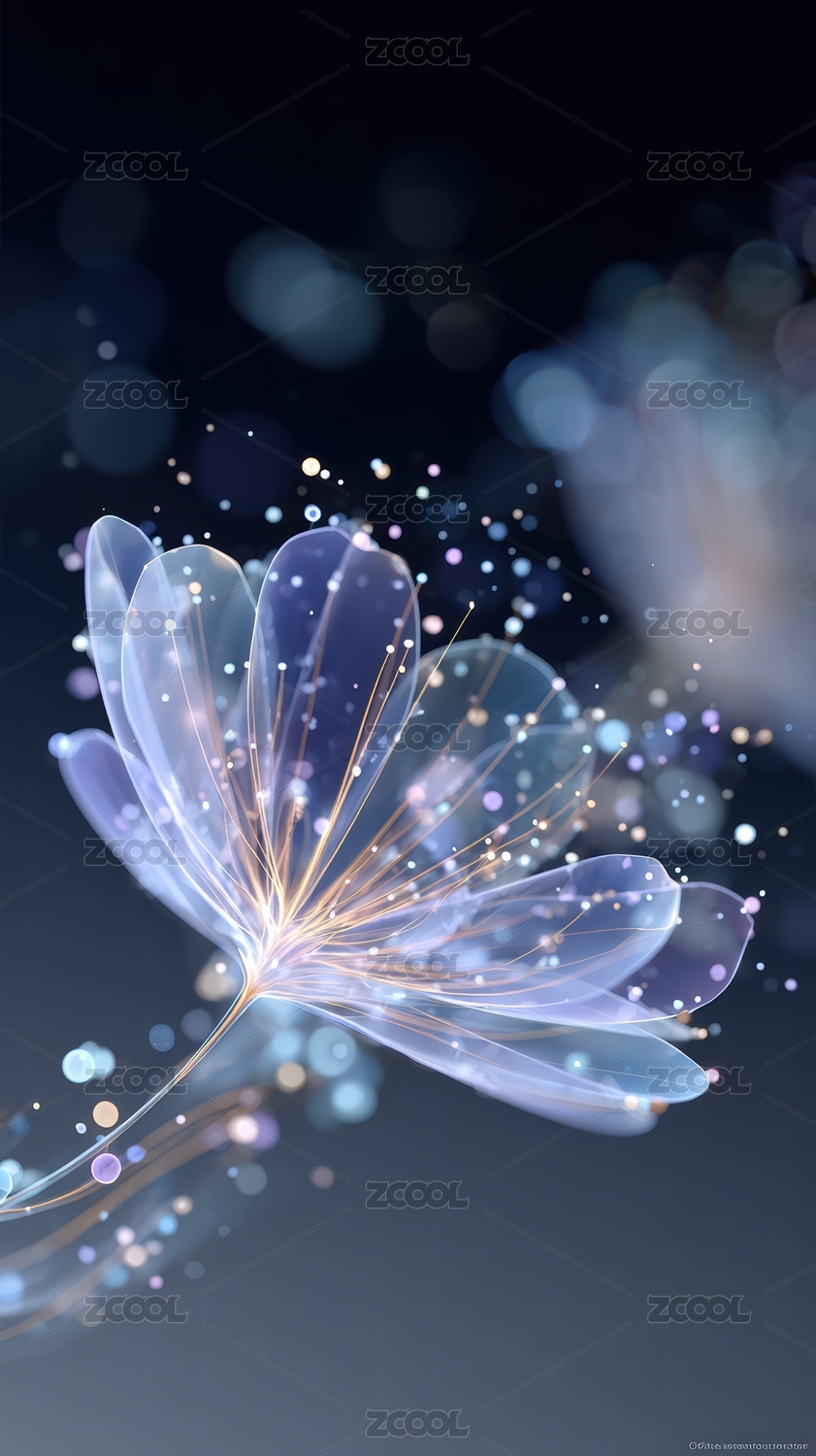 梦幻光点中的透明蓝花